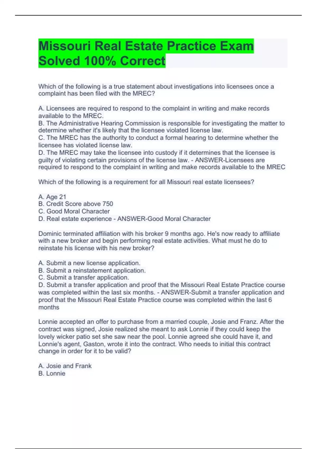 - missouri real estate exam