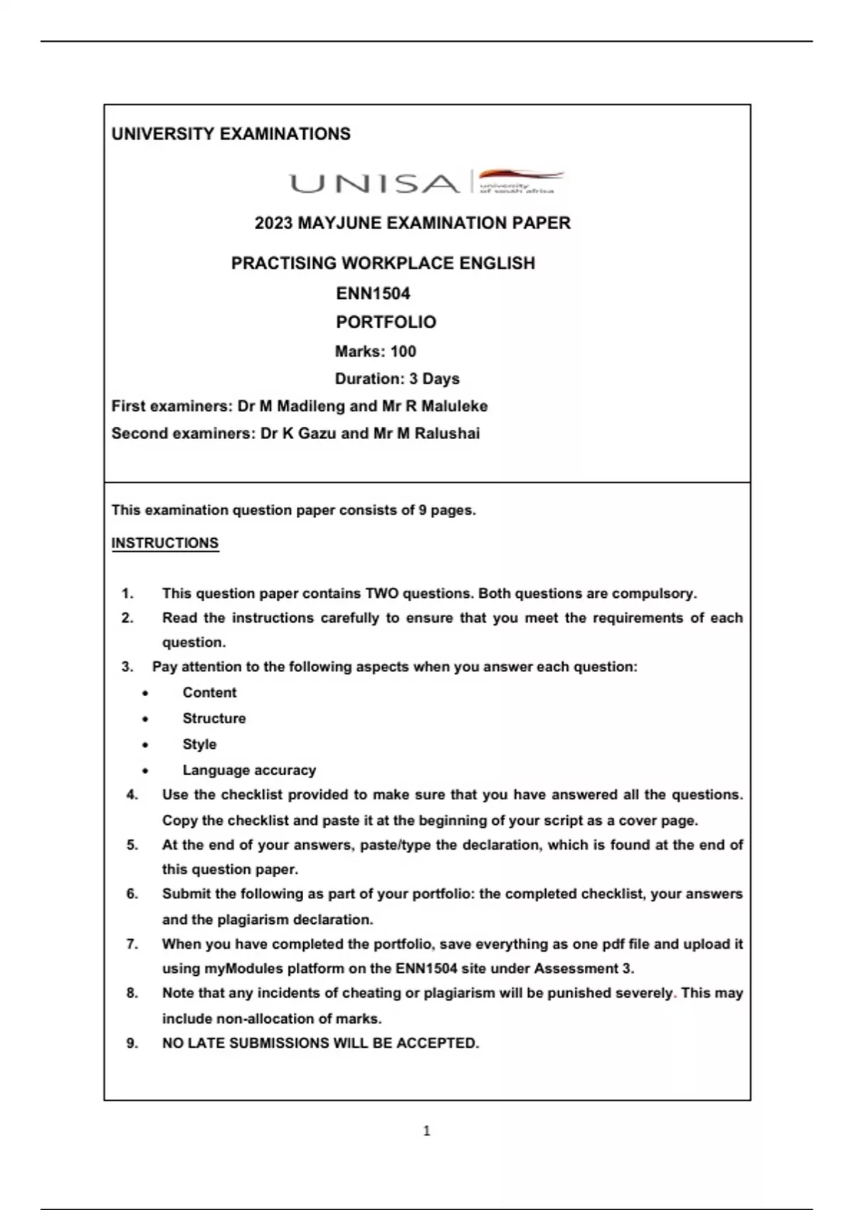 4. Use the checklist provided to make sure that you have answered all the questions.
