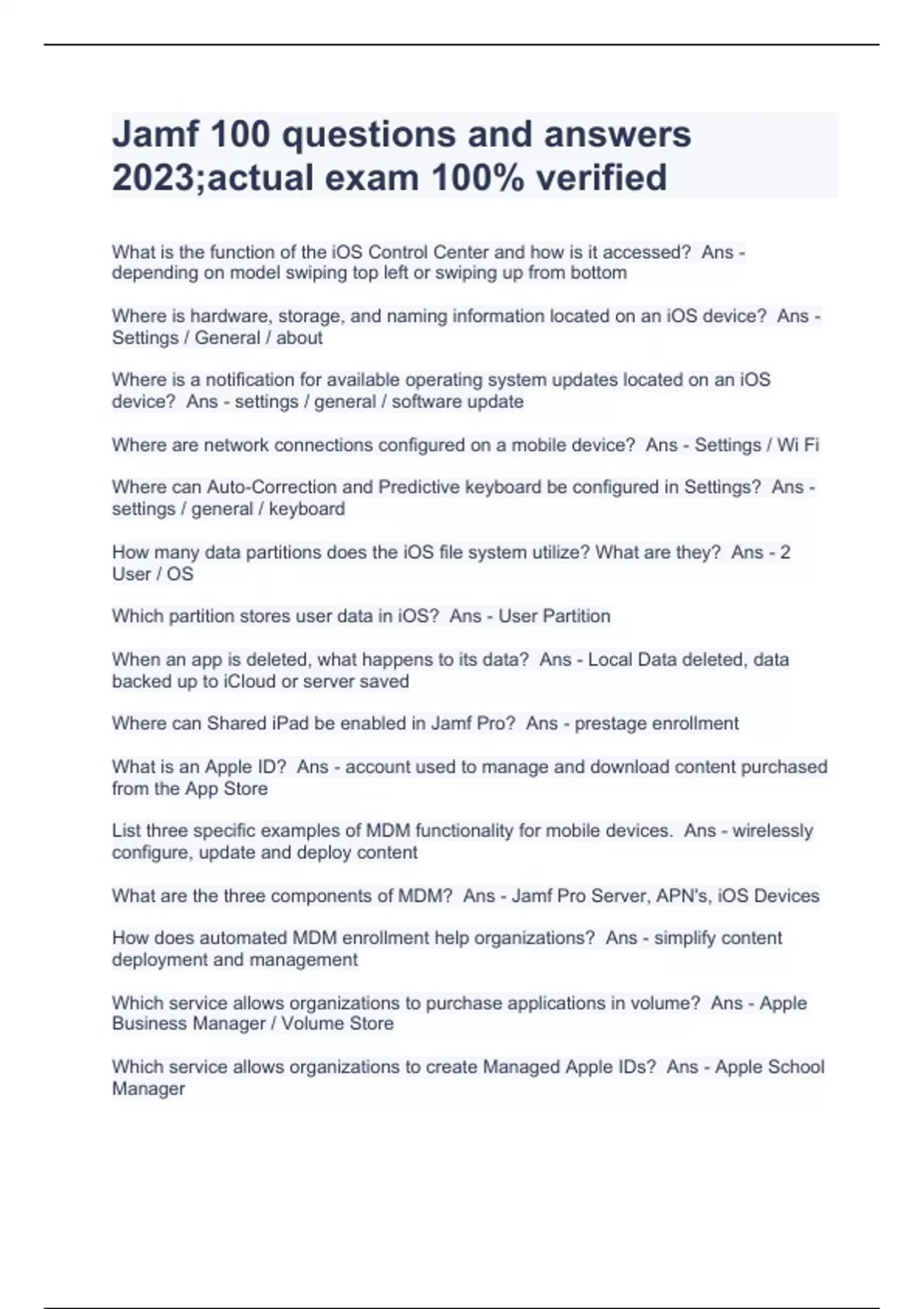 Jamf 100 questions and answers 2023;actual exam 100% verified