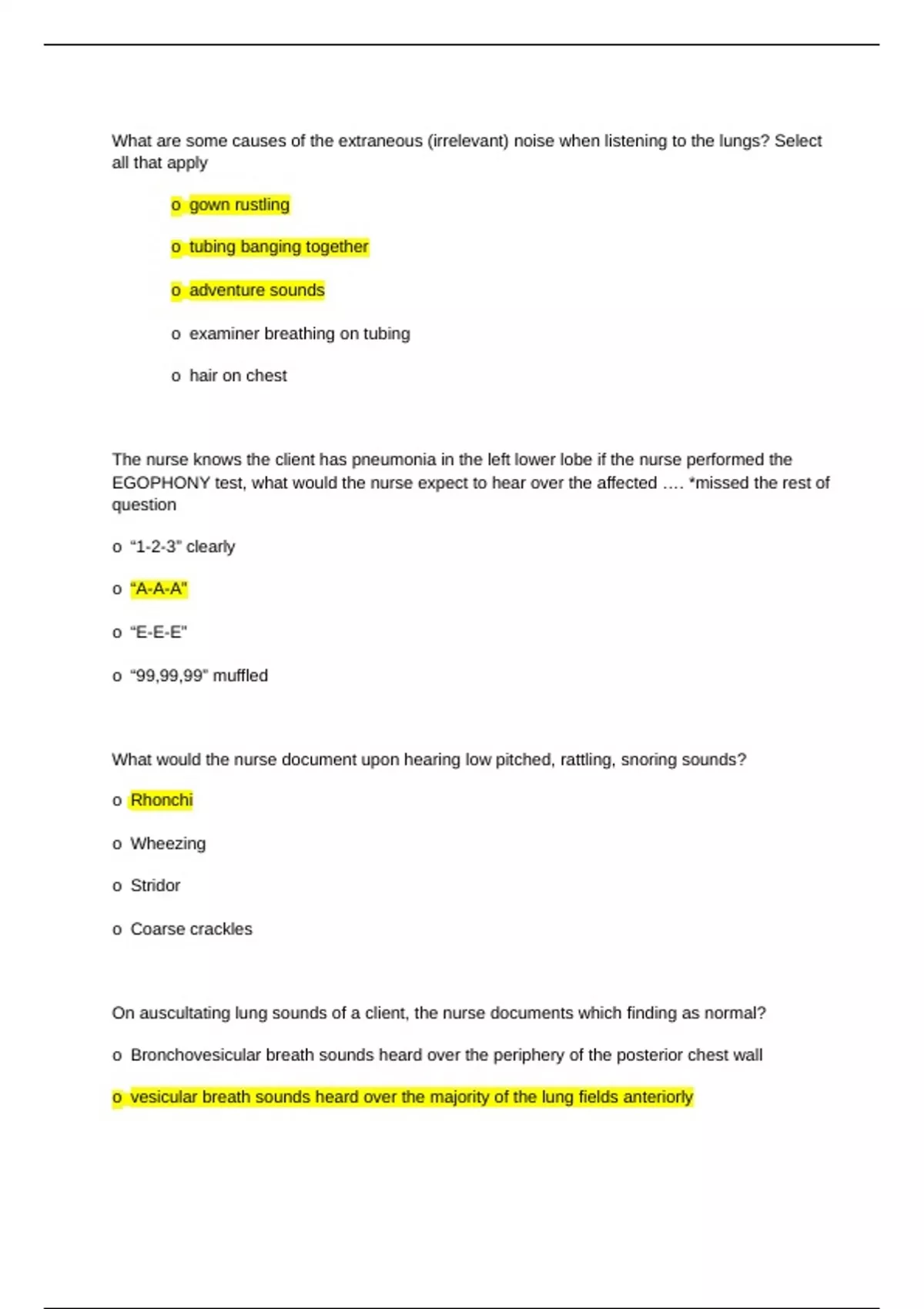 NUR 2180 Module 09 quiz Respiratory questions PA