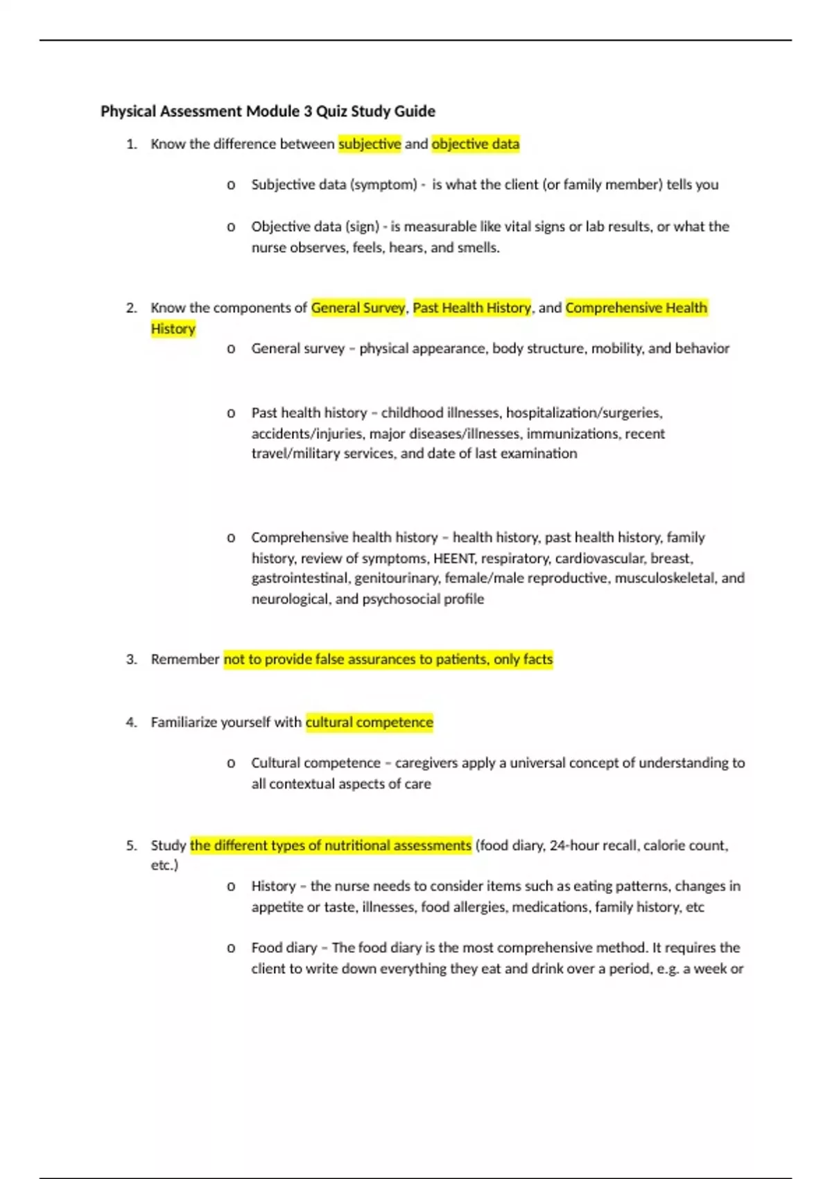 NUR 2180 Physical Assessment Module 3 Quiz Study Guide