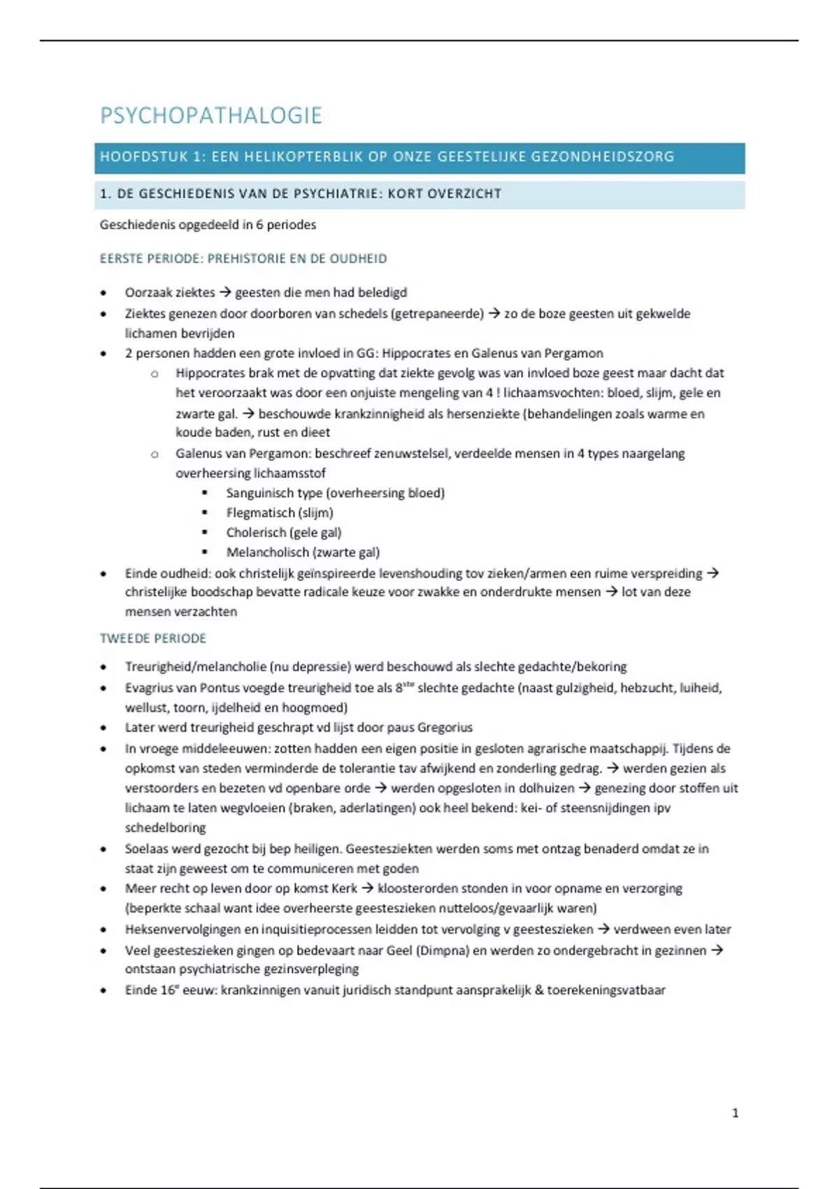 1. DE GESCHIEDENIS V AN DE PSYCHIATRIE: KORT OVERZICHT