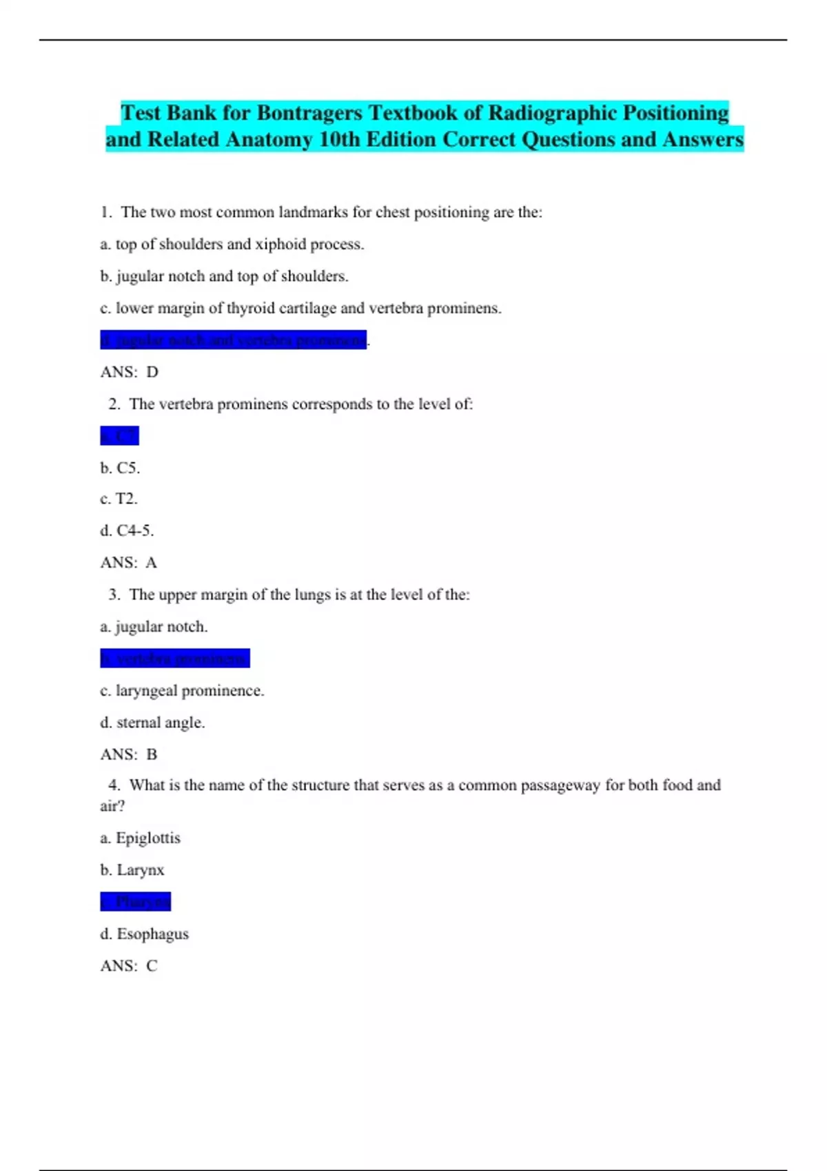 radiographic positioning and related anatomy 10th edition by kenneth l bontrager and john lampignano correct questions and answers