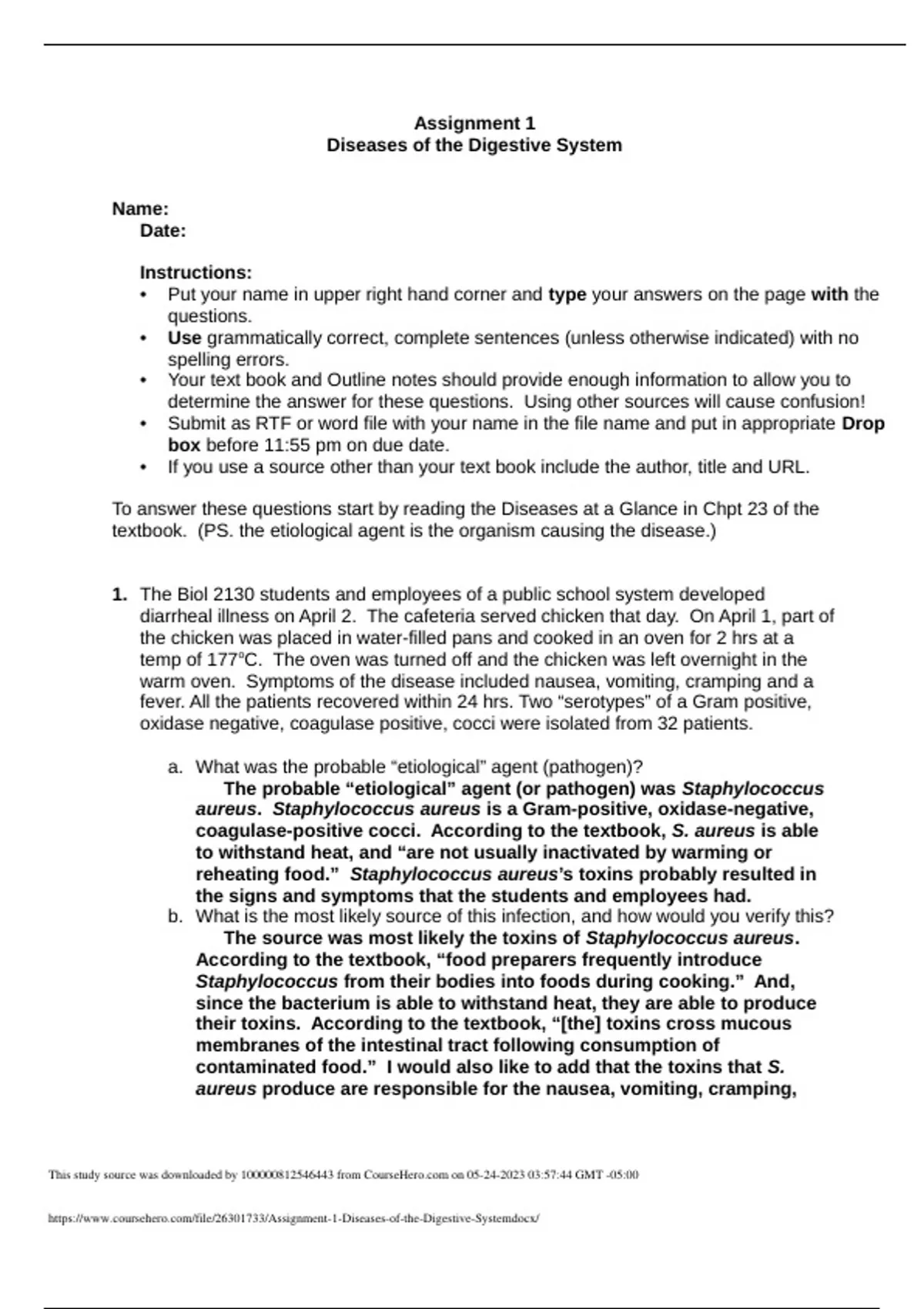 Assignment 1 Diseases of the Digestive System Latest Exams & Review, A+ Guide