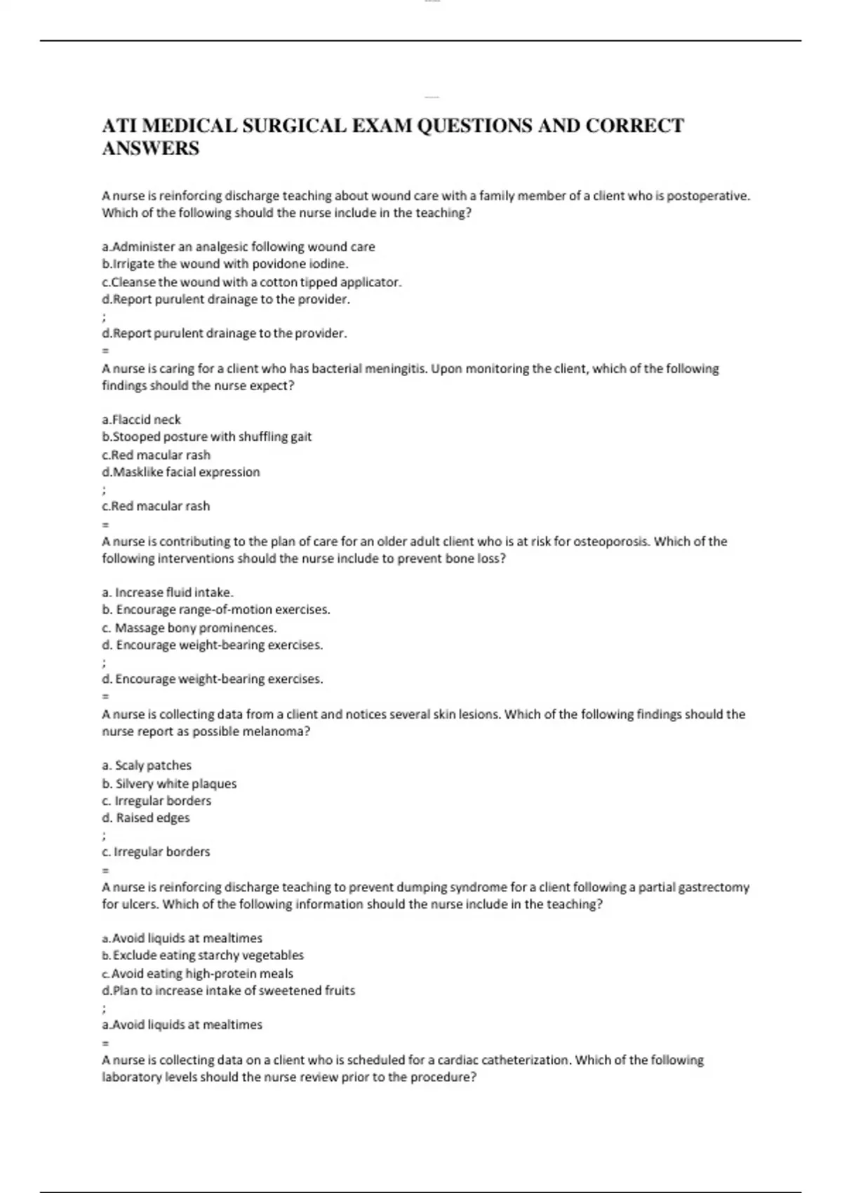 ATI MEDICAL SURGICAL EXAM QUESTIONS AND CORRECT ANSWERSATI MEDICAL SURGICAL EXAM QUESTIONS AND CORRECT ANSWERSATI MEDICAL SURGICAL EXAM QUESTIONS AND CORRECT ANSWERSATI MEDICAL SURGICAL EXAM QUESTIONS AND CORRECT ANSWERS