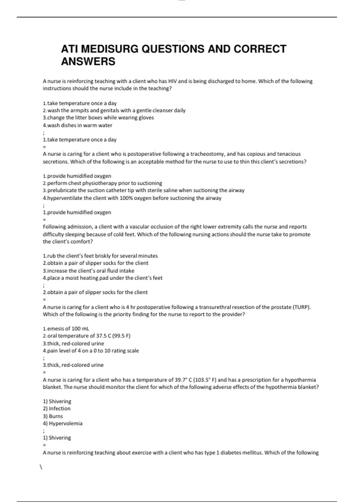 ATI MEDISURG QUESTIONS AND CORRECT ANSWERSATI MEDISURG QUESTIONS AND CORRECT ANSWERSATI MEDISURG QUESTIONS AND CORRECT ANSWERSATI MEDISURG QUESTIONS AND CORRECT ANSWERS