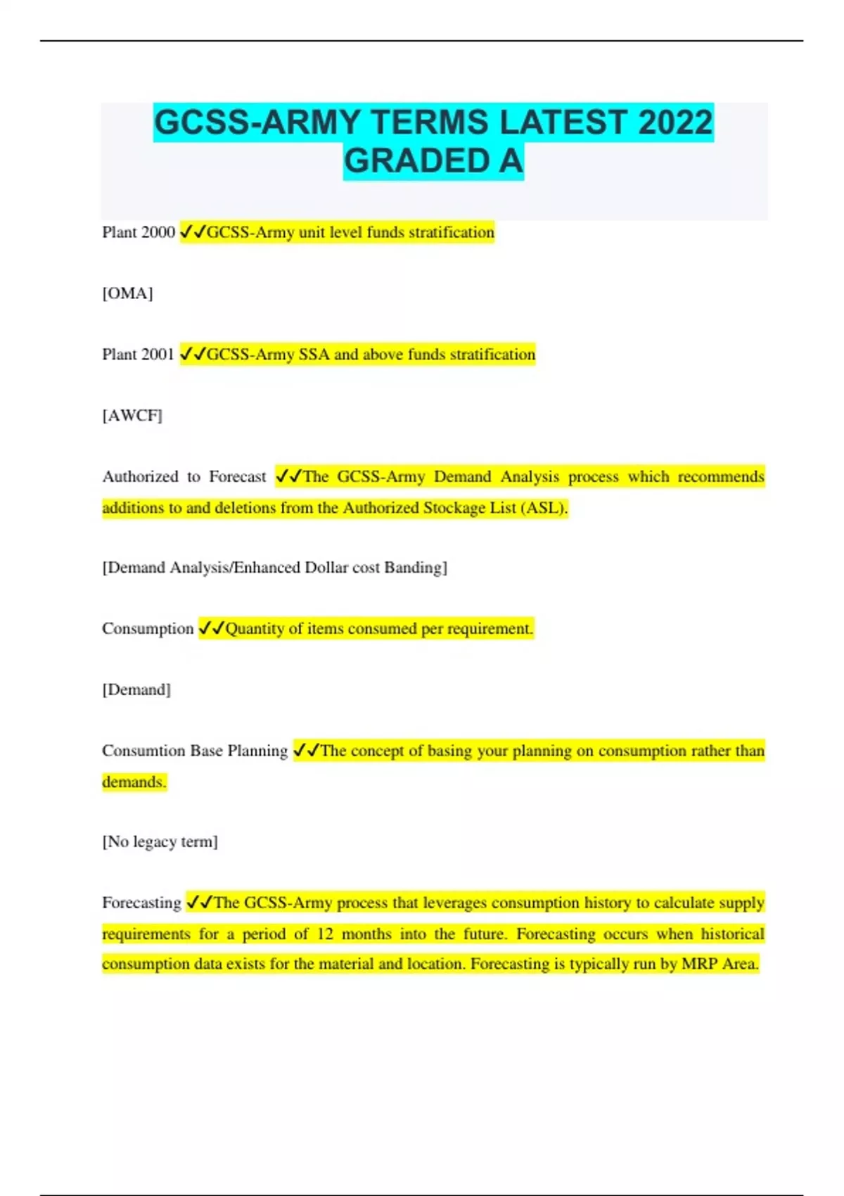 GCSS-ARMY TERMS LATEST 2022 GRADED A
