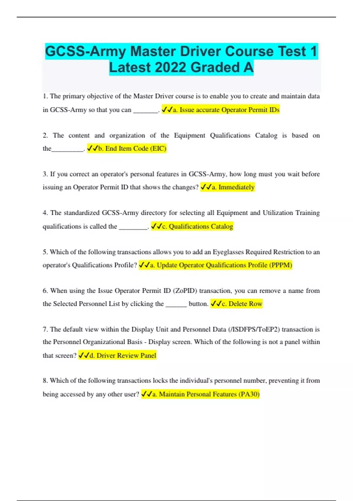 GCSS-Army Master Driver Course Test 1 Latest 2022 Graded A