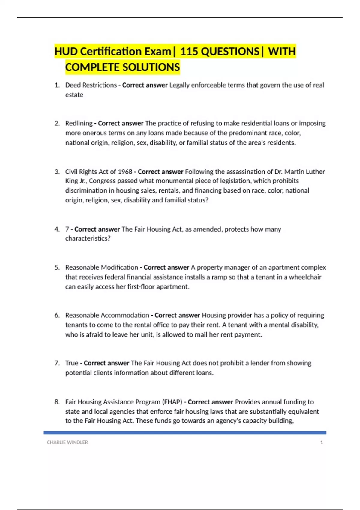 HUD Certification Exam| 115 QUESTIONS| WITH COMPLETE SOLUTIONS