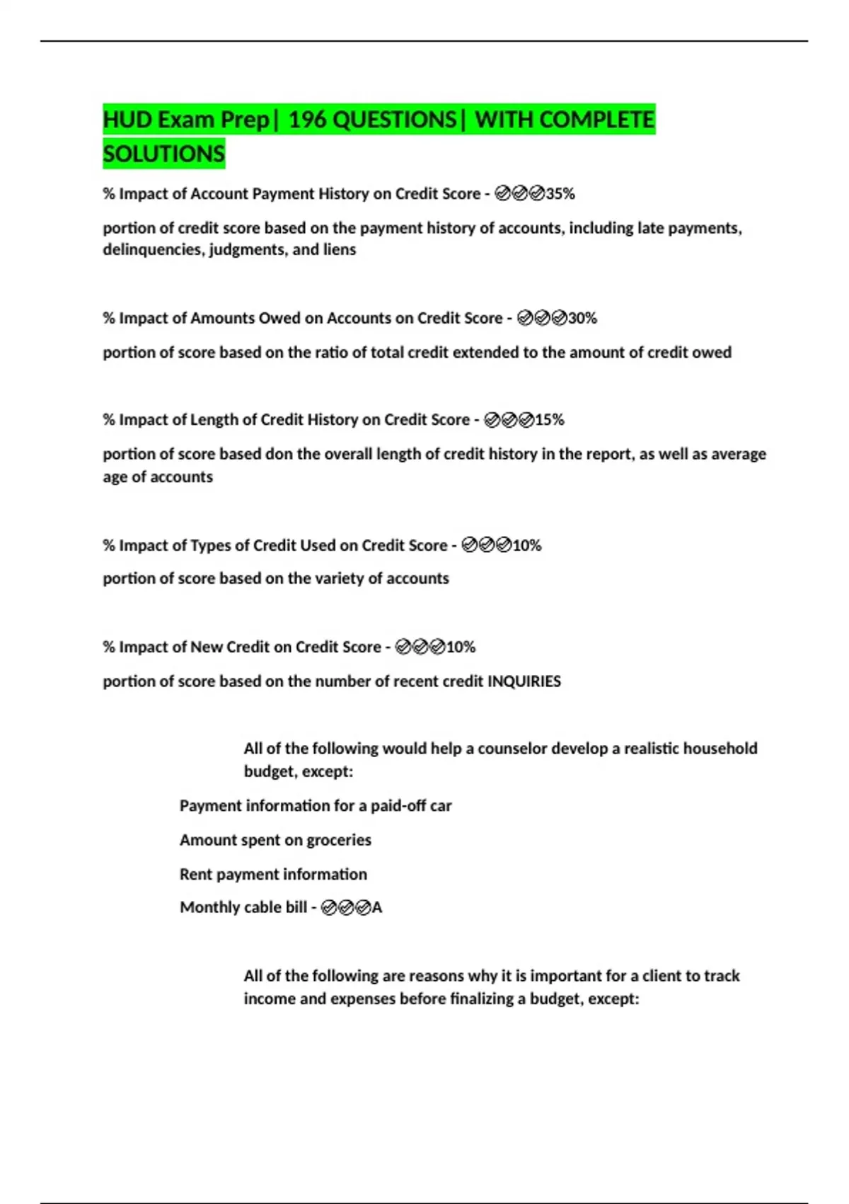 HUD Exam Prep| 196 QUESTIONS| WITH COMPLETE SOLUTIONS
