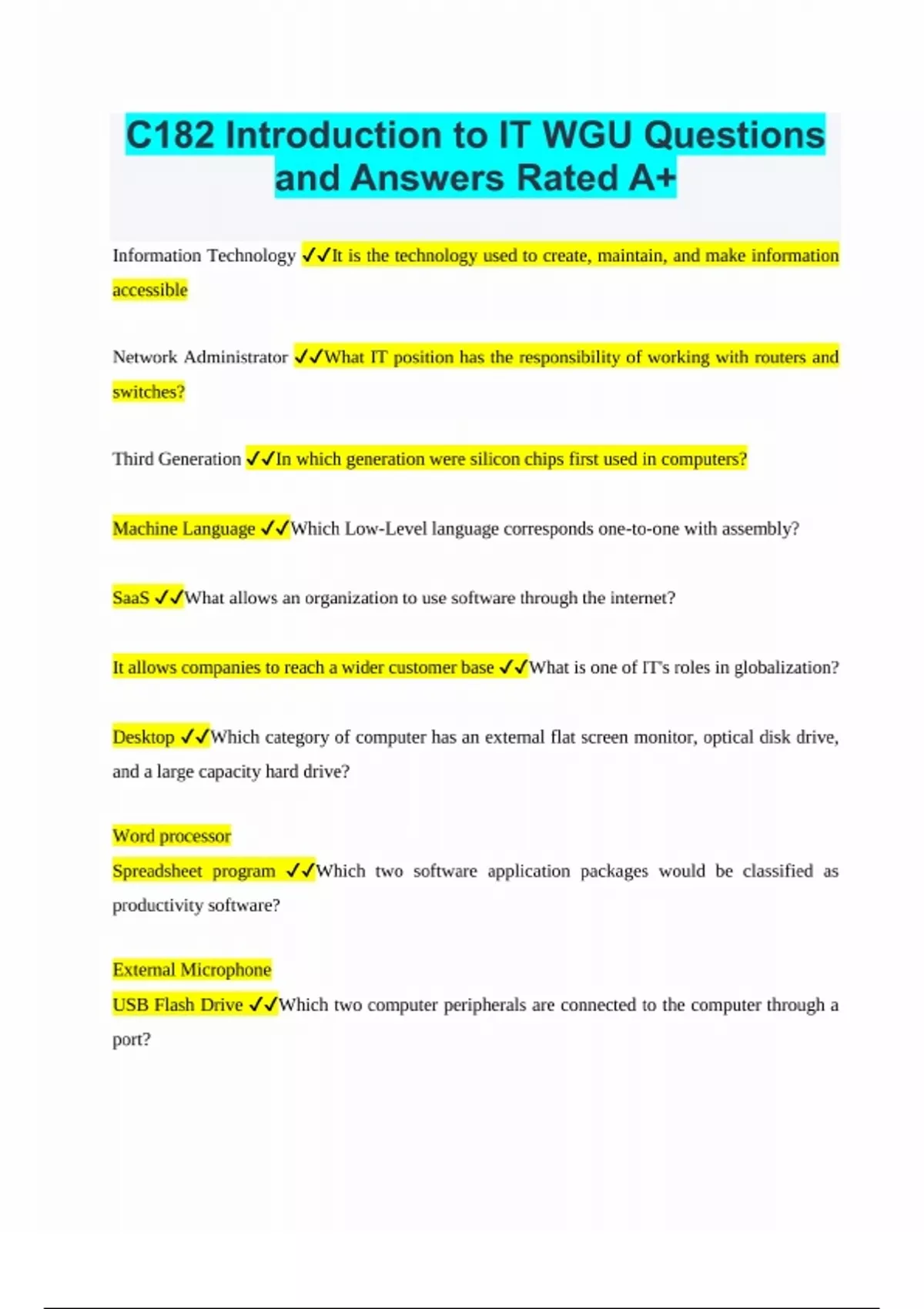 WGU C182 FInal Exam most reliable for best scores