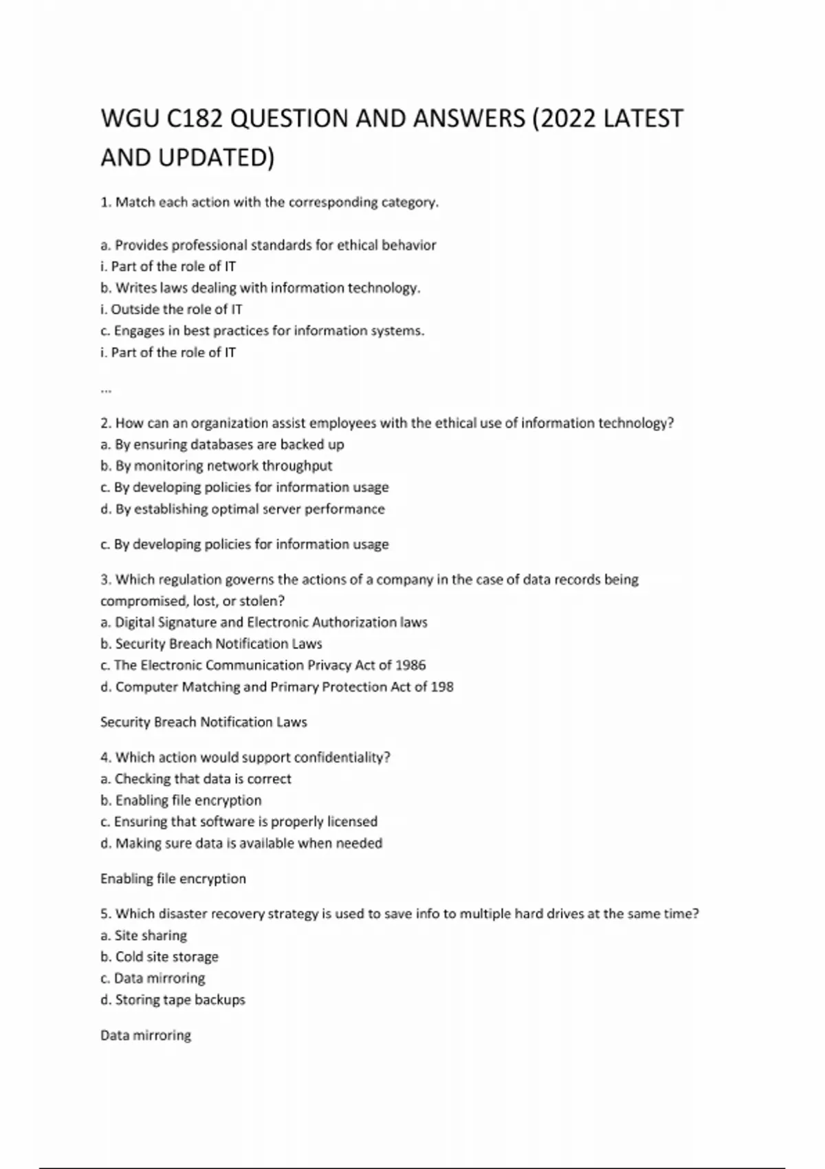WGU C182 QUESTION AND ANSWERS most reliable for best scores