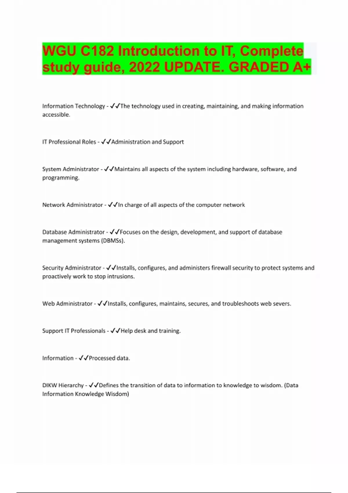 WGU C182 Introduction to IT,Complete study guide 2022 UPDATE for most reliable best scores