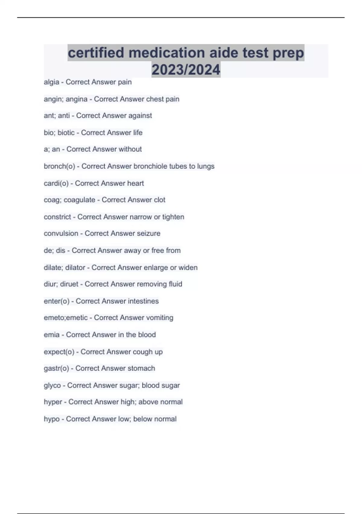 Medication Aide STUDY BUNDLE (COMPLETE PACKAGE) 2023/2024 | 100 % Verified Answers