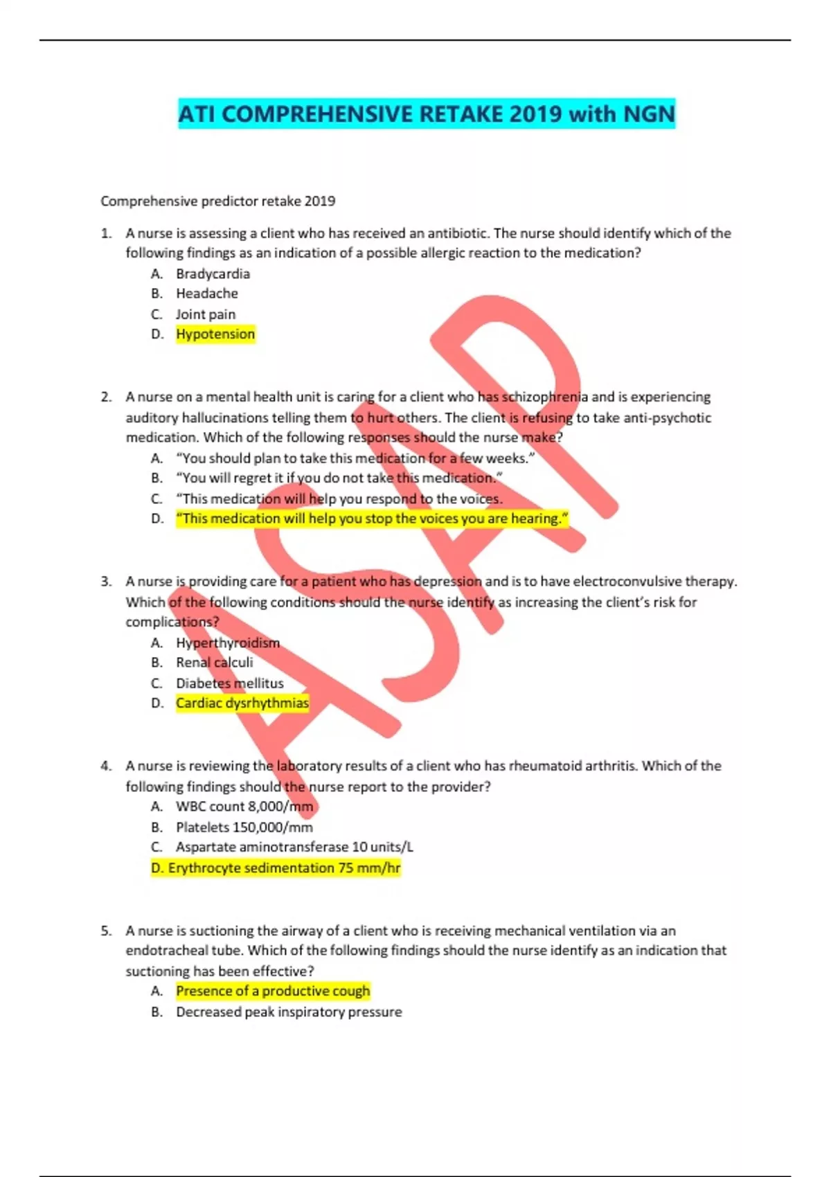 ATI COMPREHENSIVE RETAKE 2019 with NGN