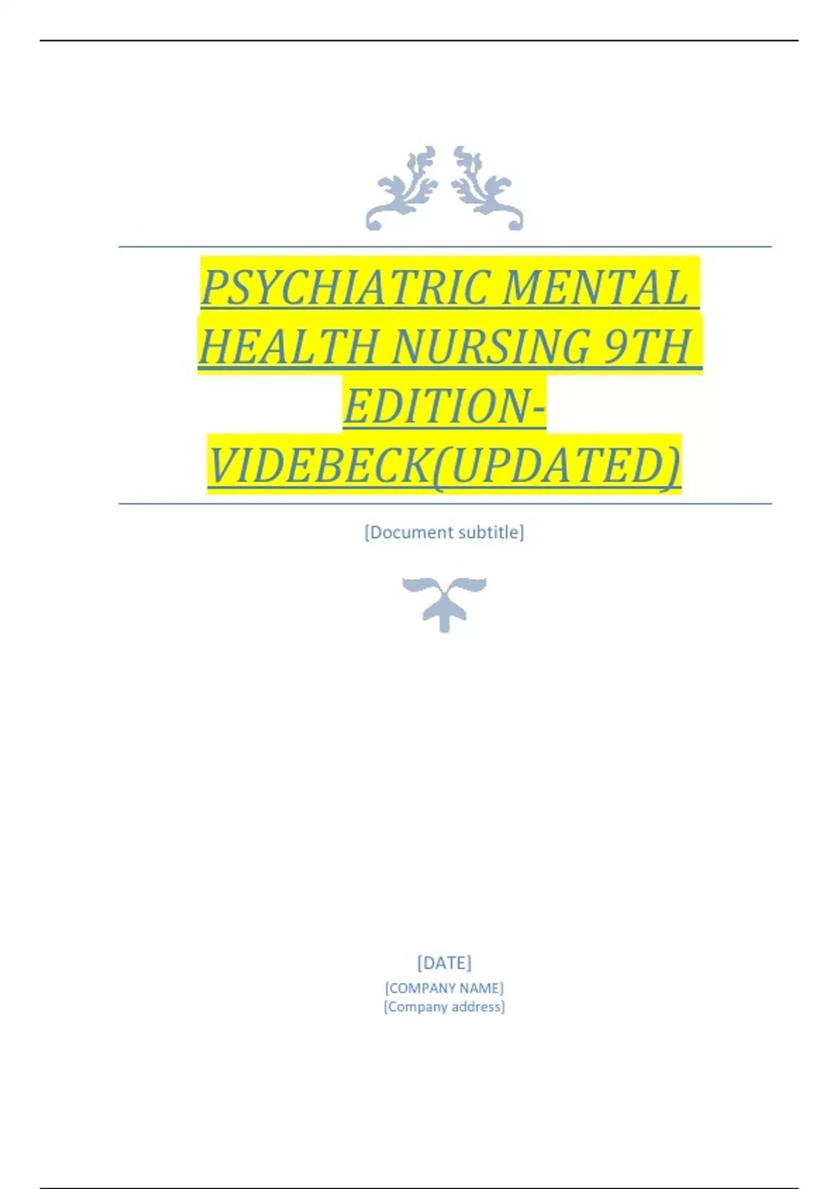 PSYCHIATRIC MENTAL HEALTH NURSING 9TH EDITION-VIDEBECK TEST BANK(UPDATED)