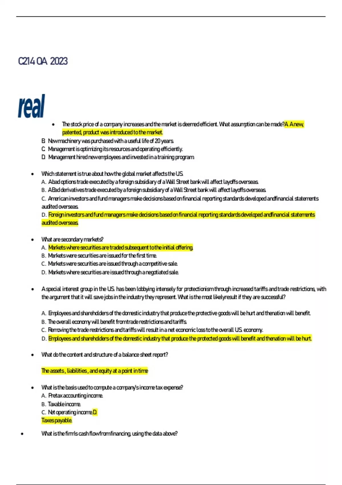 WGU C214 OA FINANCIAL MANAGEMENT EXAMS WITH QUESTIONS AND ANSWERS (2023/2024) (VERIFIED ANSWERS)FULL PACK