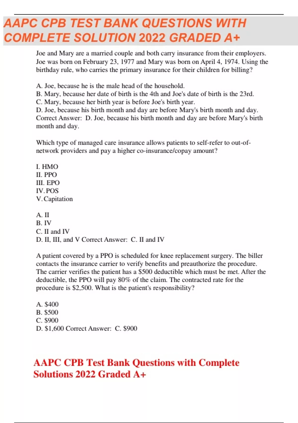 AAPC CPB Test Bank Questions with Complete Solutions Graded A+