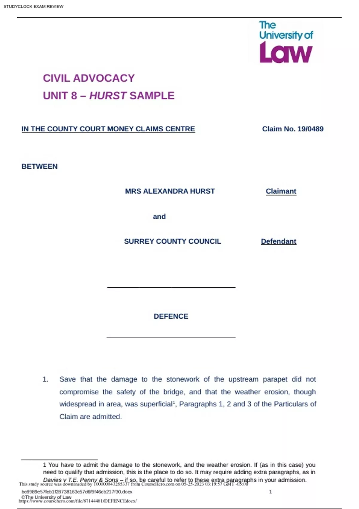 CIVIL ADVOCACYUNIT 8 -HURSTSAMPLE
