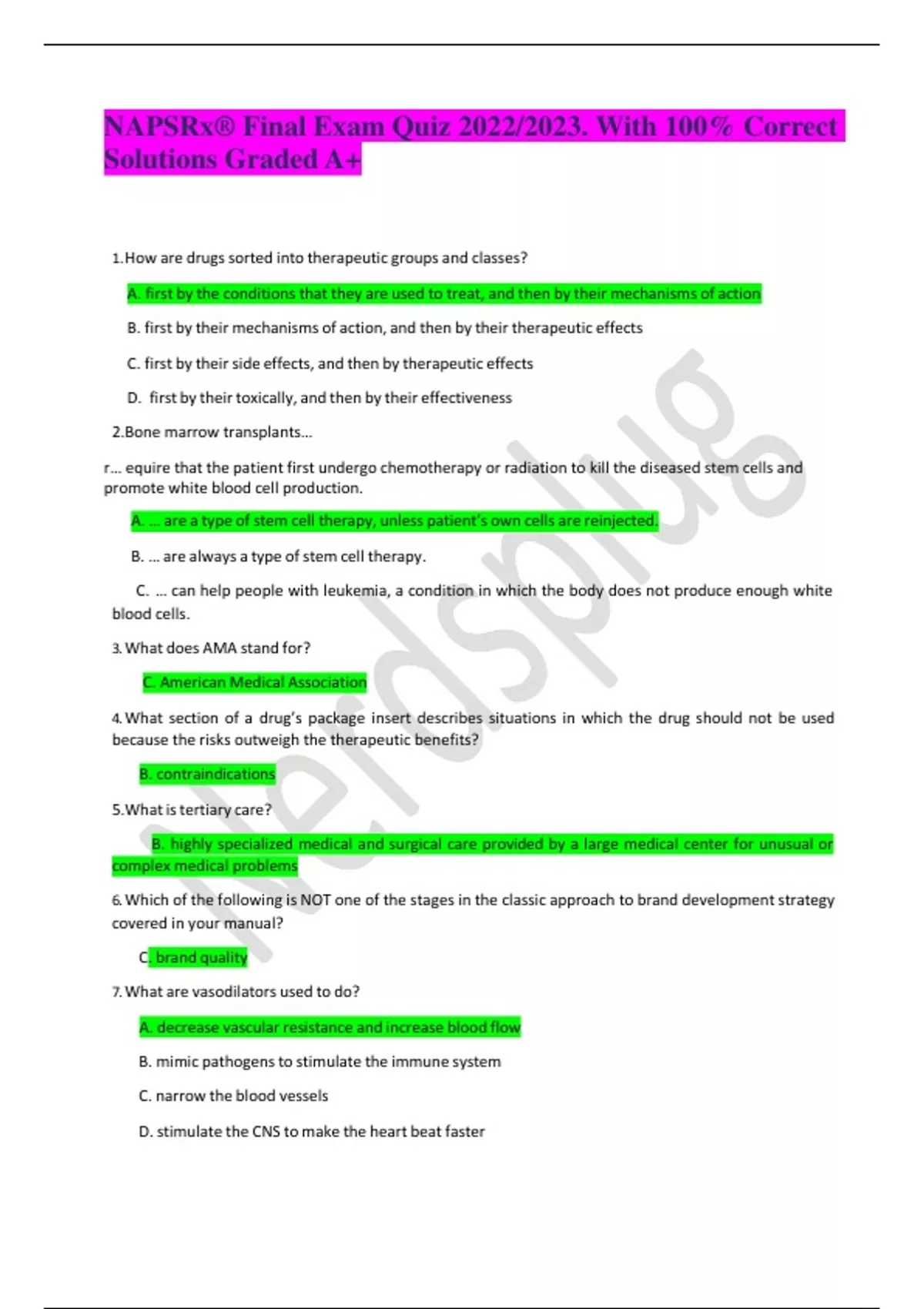 NAPSRx® Final Exam Quiz 2022/2023. With 100% Correct Solutions Graded A+ 1. How are drugs sorted into therapeutic groups and classes?