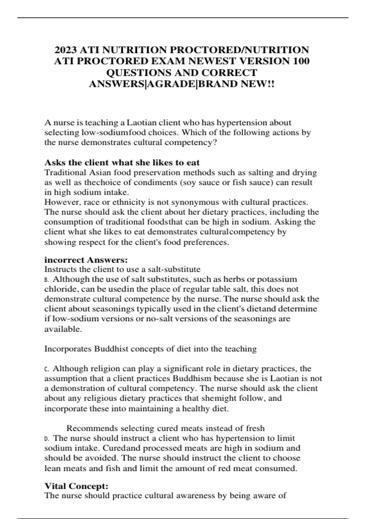 2023 ATI NUTRITION PROCTORED/NUTRITION ATI PROCTORED EXAM NEWEST VERSION 100 QUESTIONS AND CORRECT ANSWERS|AGRADE|BRAND NEW!!
