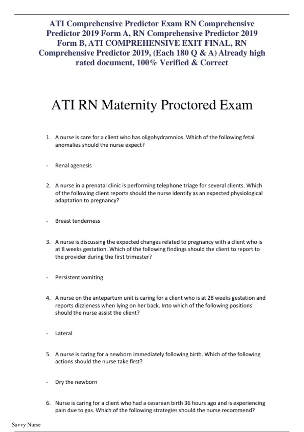 ATI Maternity Proctored 2019 (Questions/Answers )