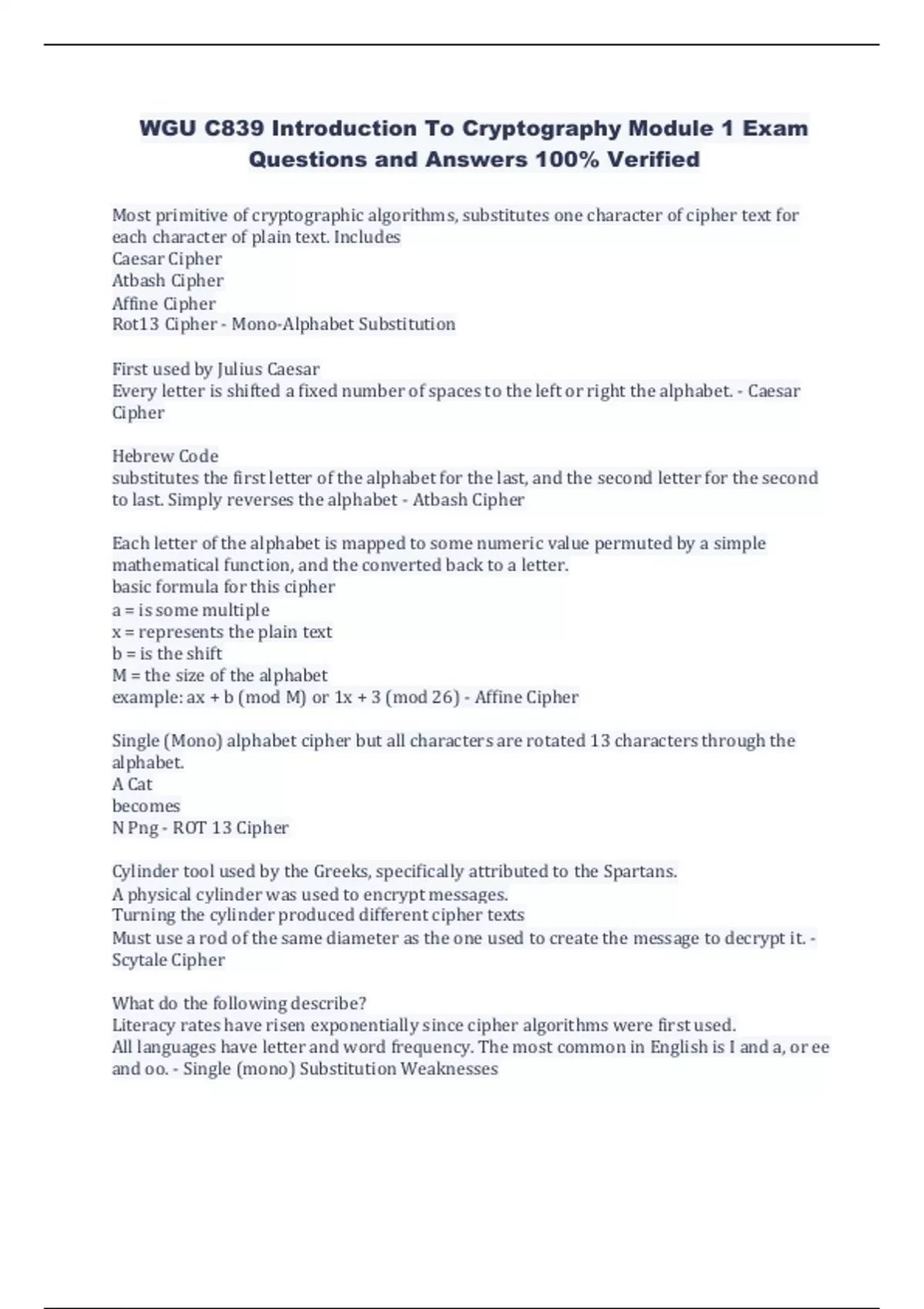 wgu c839 introduction to cryptography module 1 exam questions and answers 100 verified