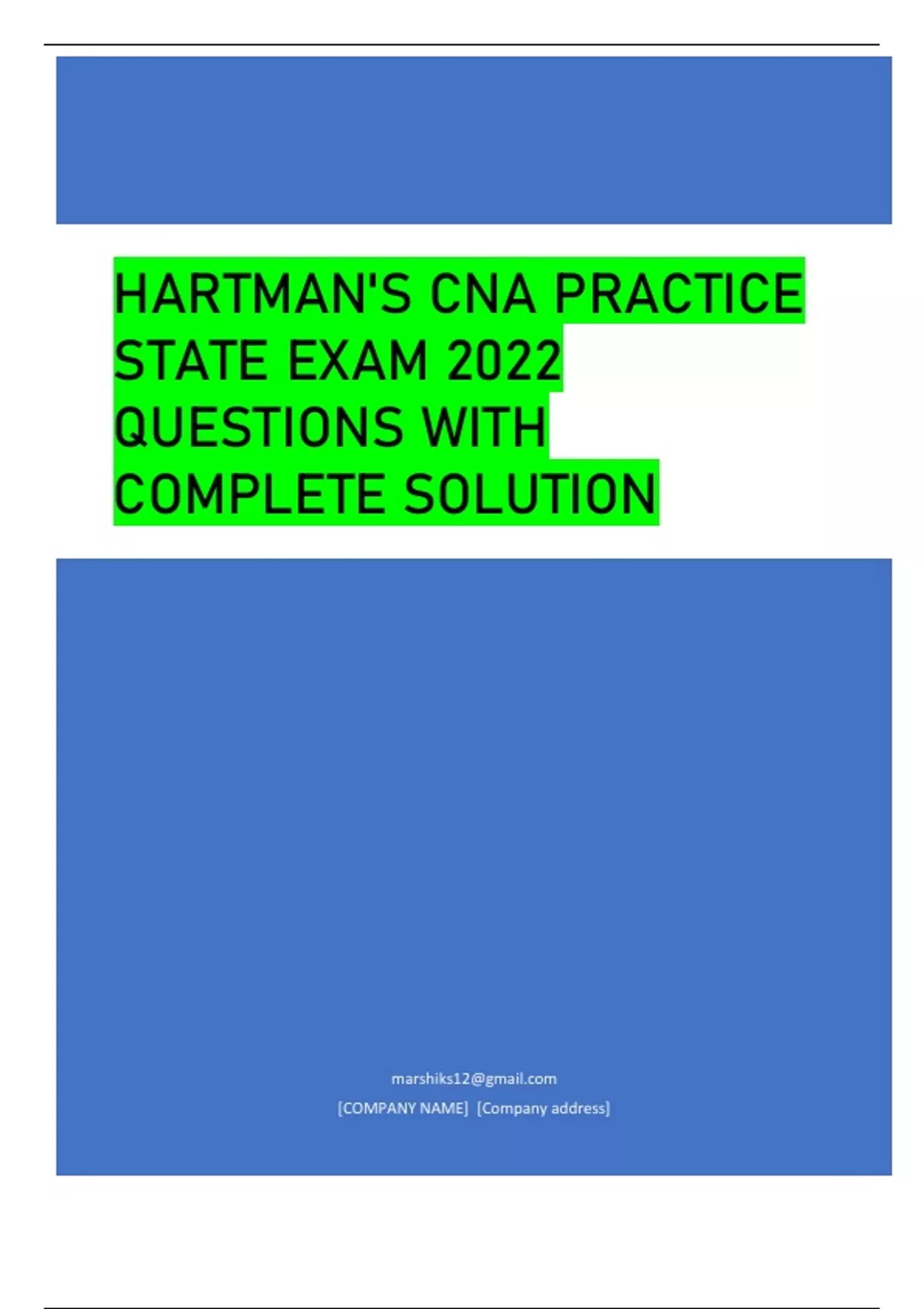 HARTMAN'S CNA PRACTICE STATE EXAM 2022 QUESTIONS WITH COMPLETE SOLUTION