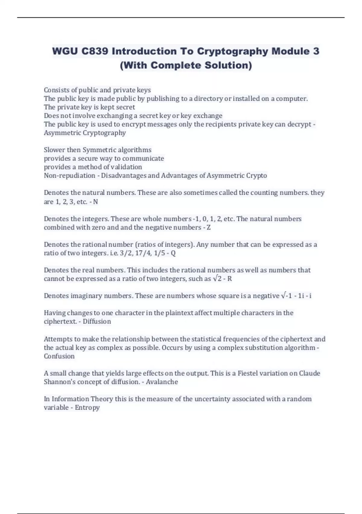 wgu c839 introduction to cryptography module 3 with complete solution