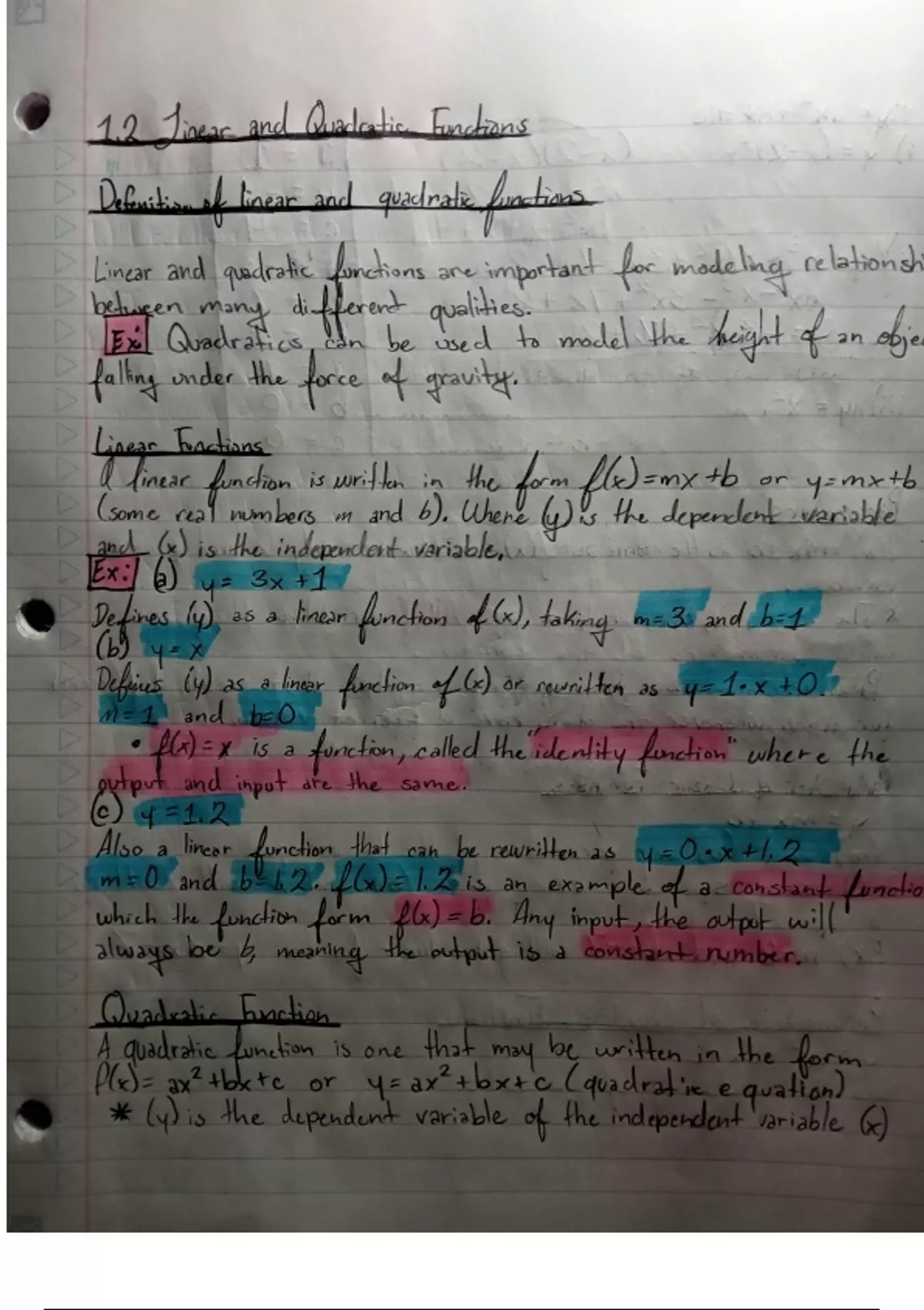 Section 1.2-1.4 Functions and Differential Calculus notes