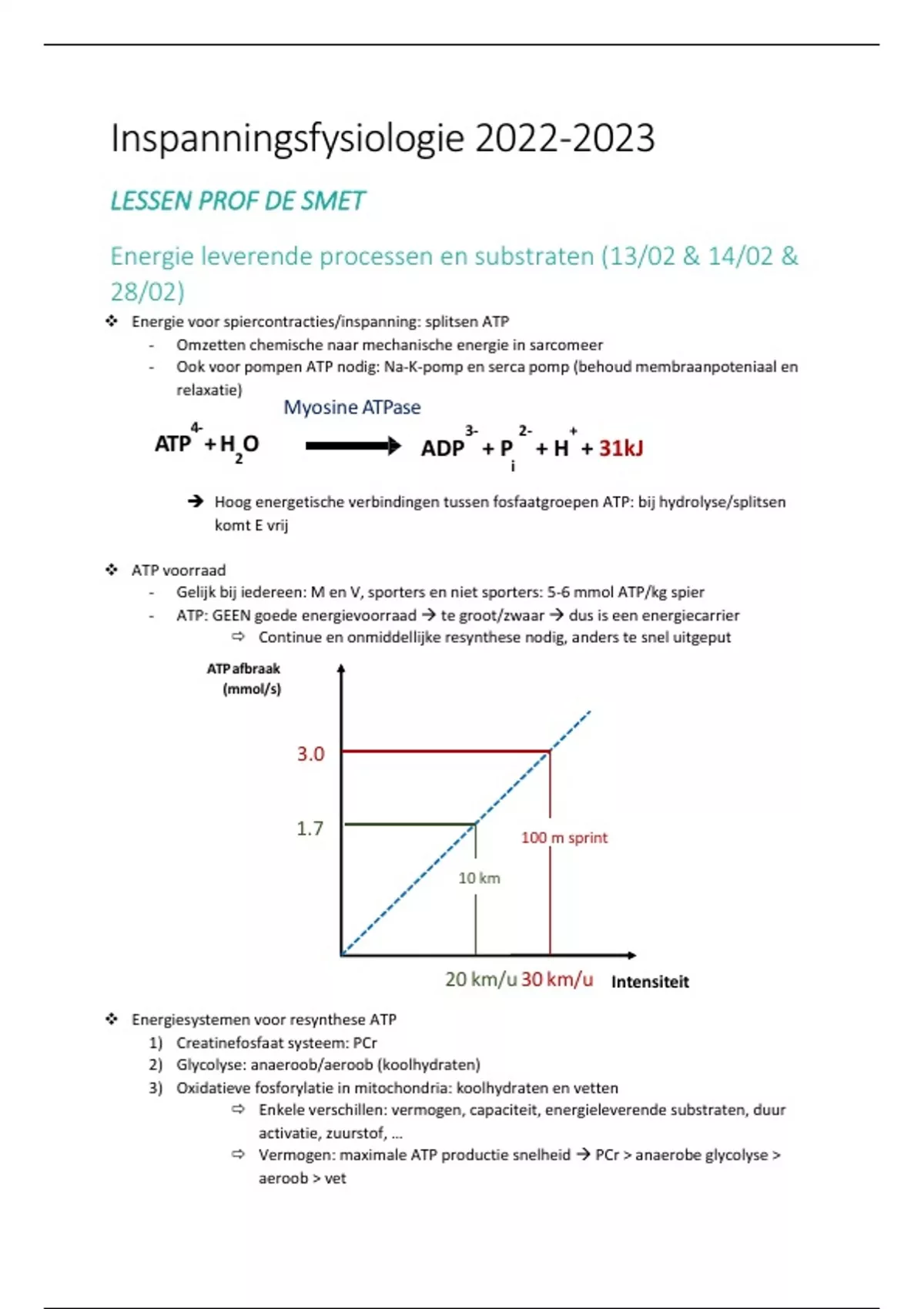 ❖ Energie voor spiercontracties/inspanning: splitsen ATP