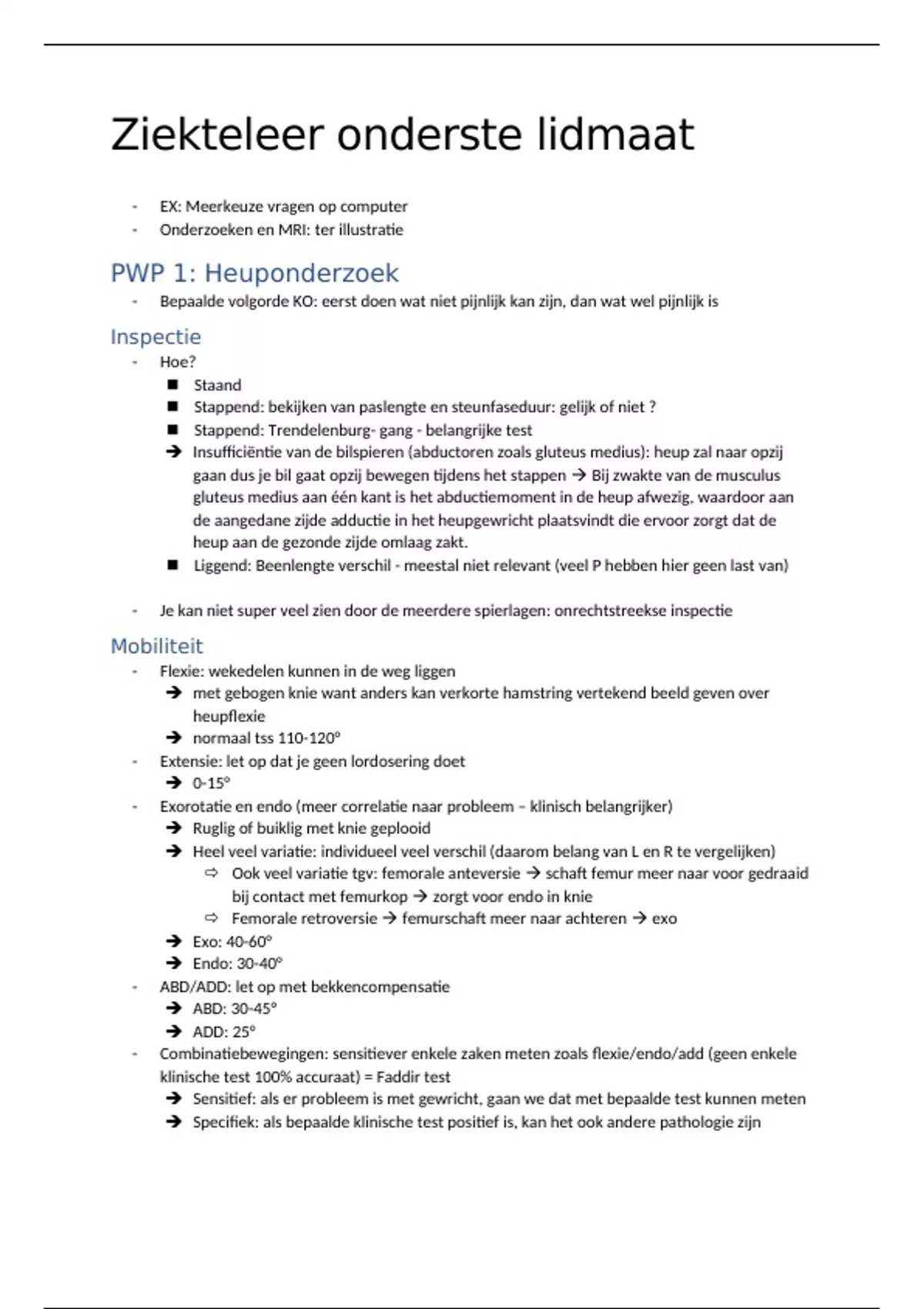- Geïsoleerde klinische testen van de heup: niet echt diagnostische waarde lage specificiteit