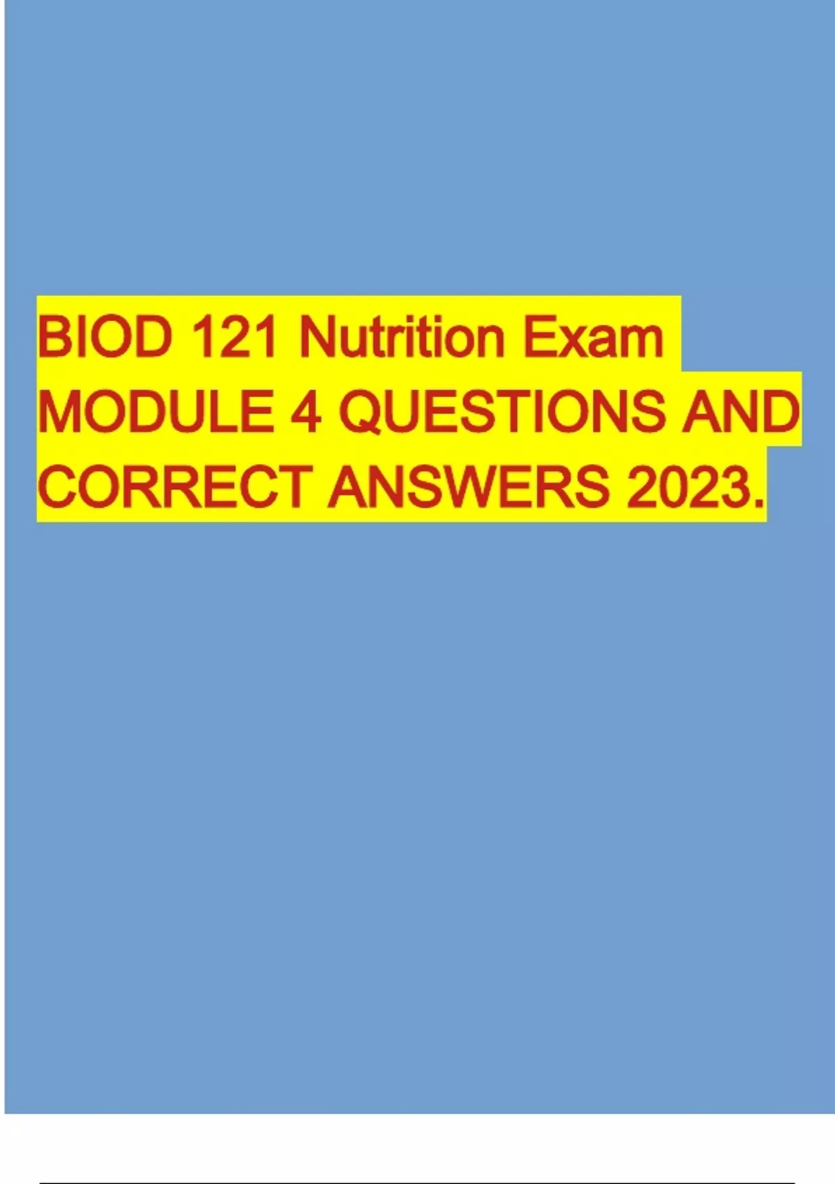BIOD 121 Nutrition Exam MODULE 4 QUESTIONS AND CORRECT ANSWERS 2023.