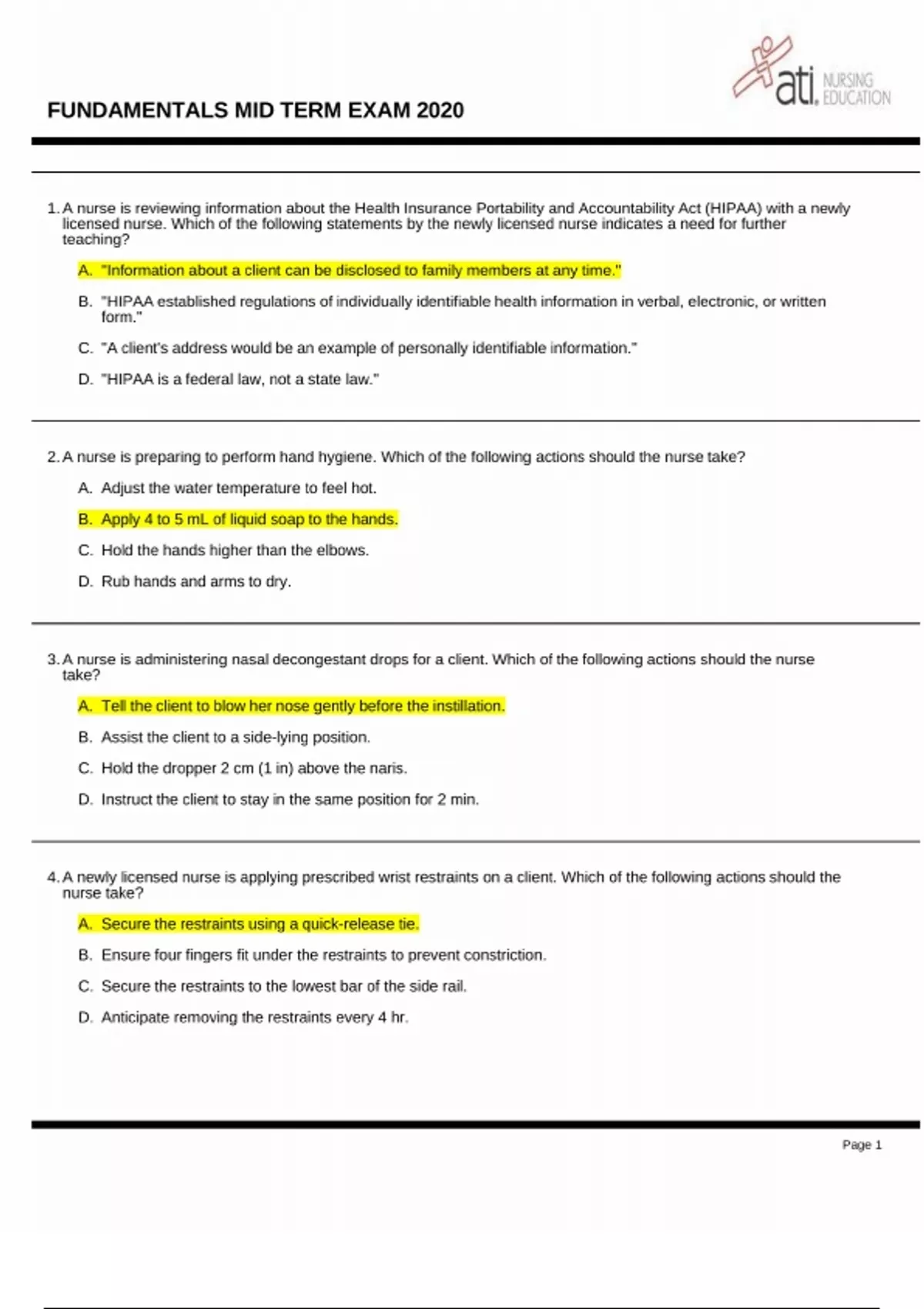ati fundamentals mid term exam