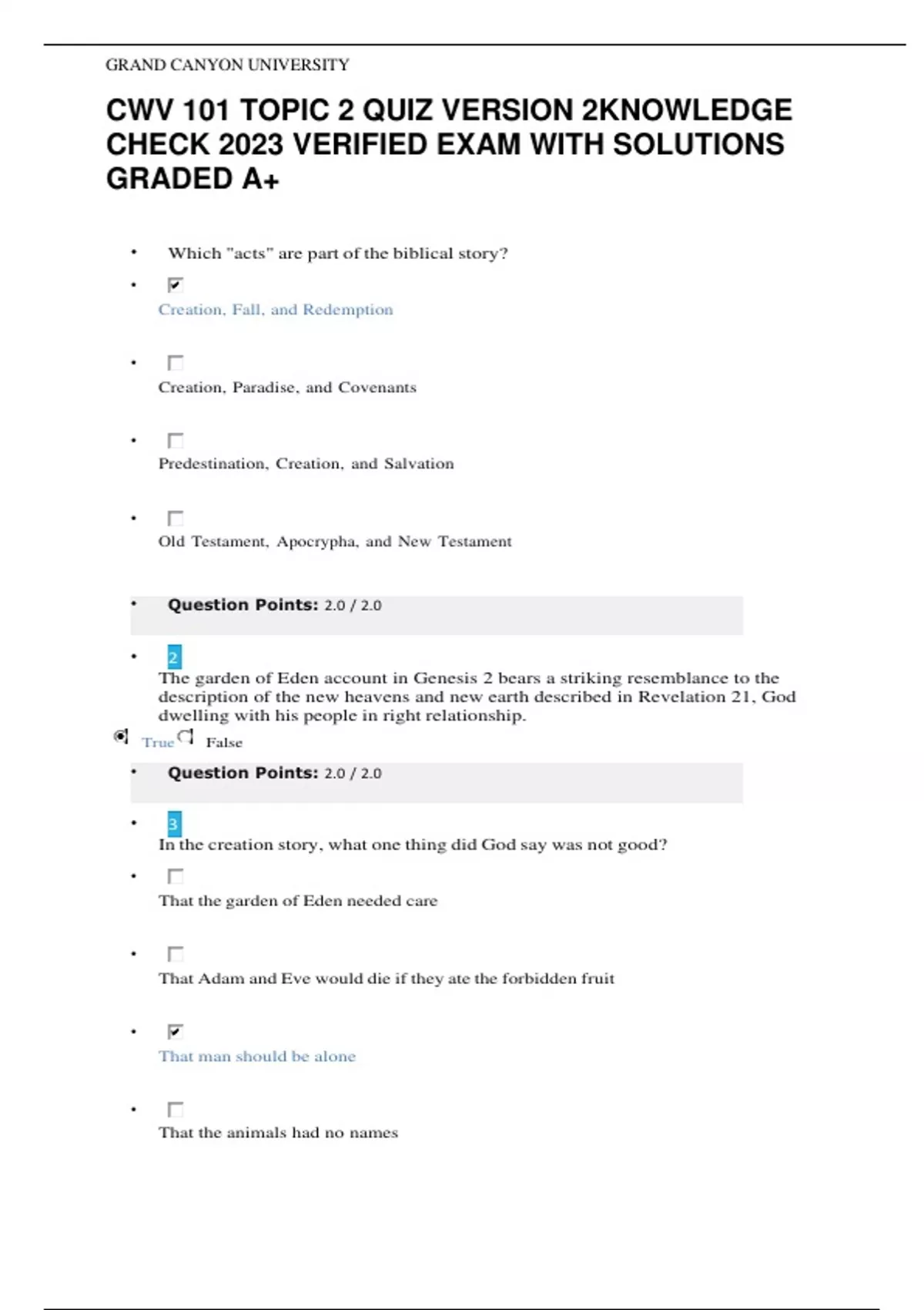 CWV 101 Christian Worldview (Grand Canyon University) 2024 LATEST TOPIC QUIZEZ GUARANTEED PASS NEW EXAMS