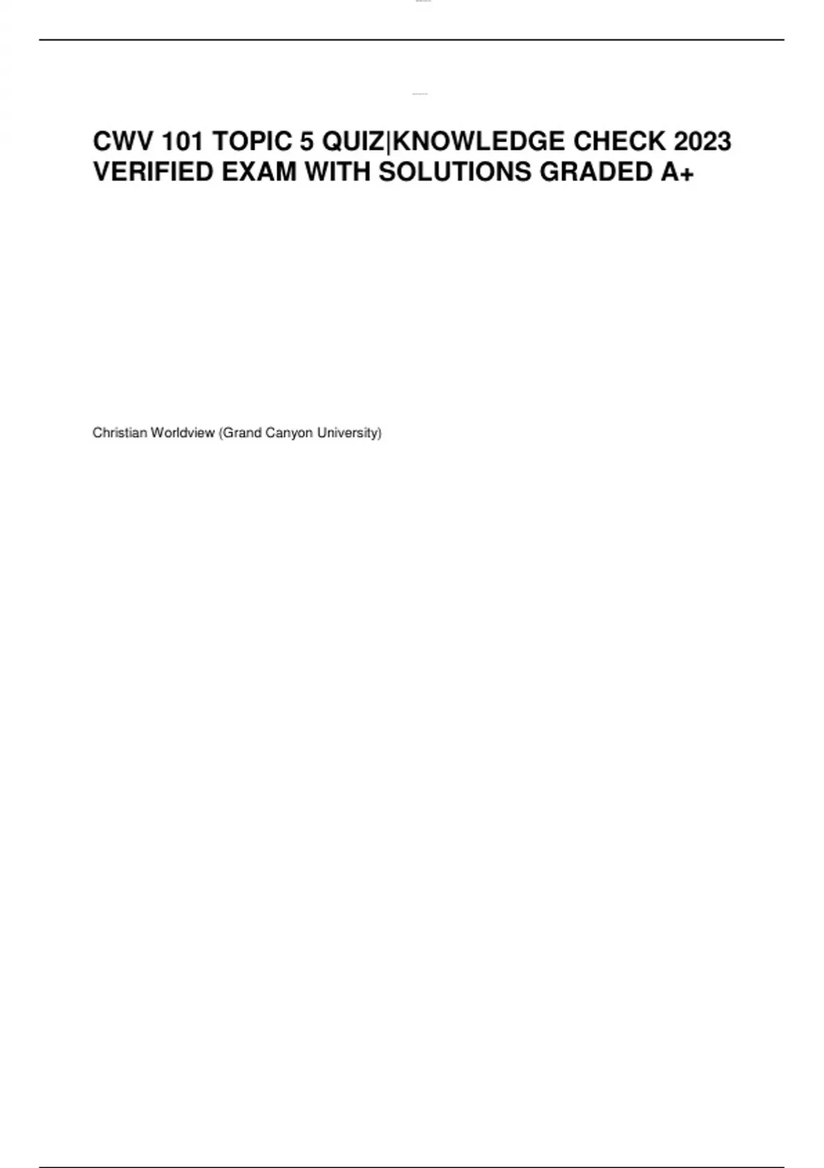 CWV 101 Christian Worldview (Grand Canyon University) 2024 LATEST TOPIC QUIZEZ GUARANTEED PASS NEW EXAMS