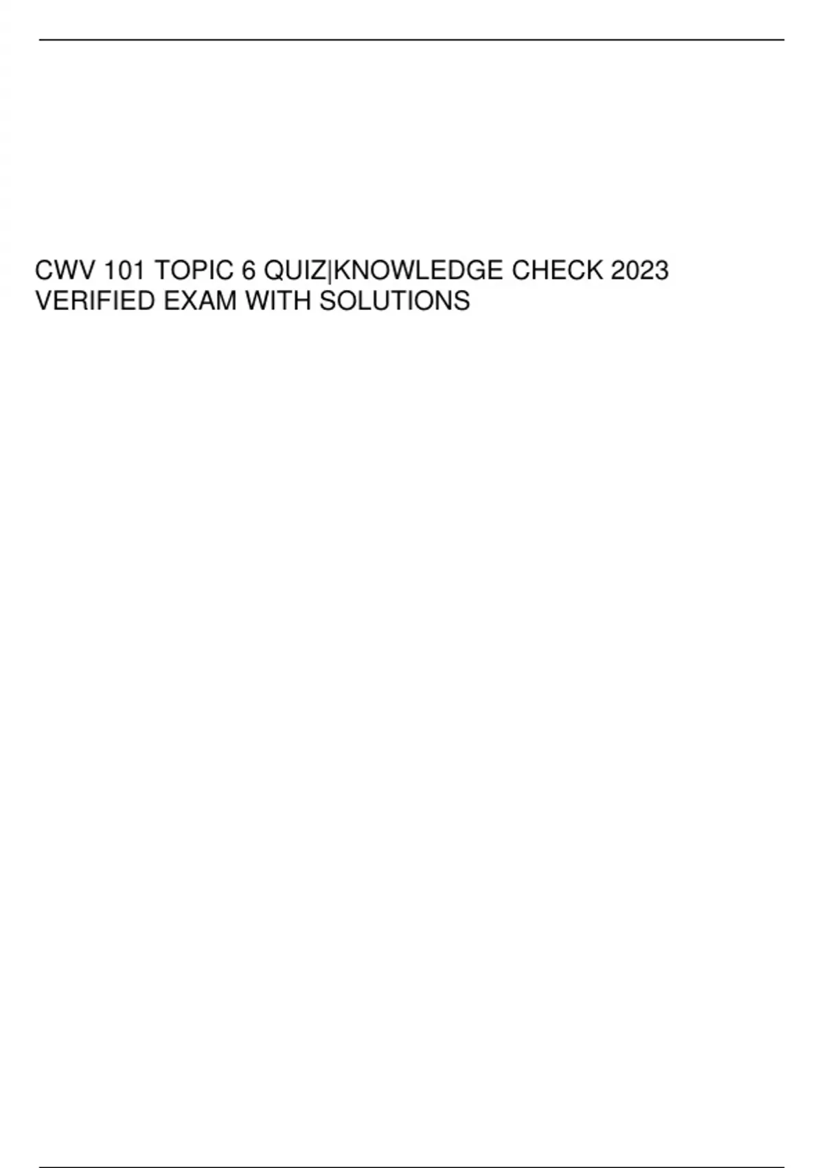CWV 101 TOPIC 6 QUIZ|KNOWLEDGE CHECK 2023 VERIFIED EXAM WITH SOLUTIONS
