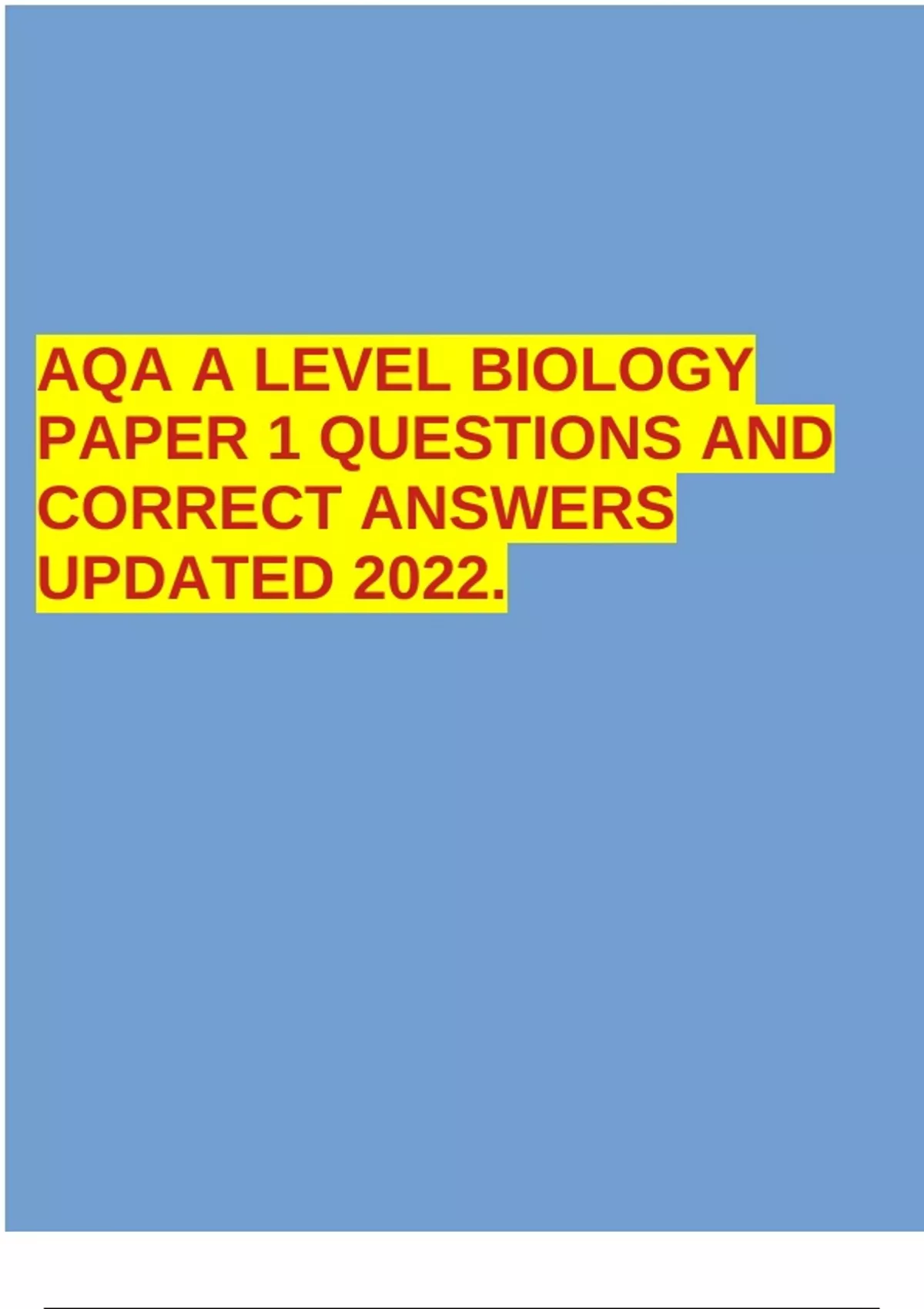 AQA A LEVEL BIOLOGY PAPER 1 QUESTIONS AND CORRECT ANSWERS UPDATED 2022.