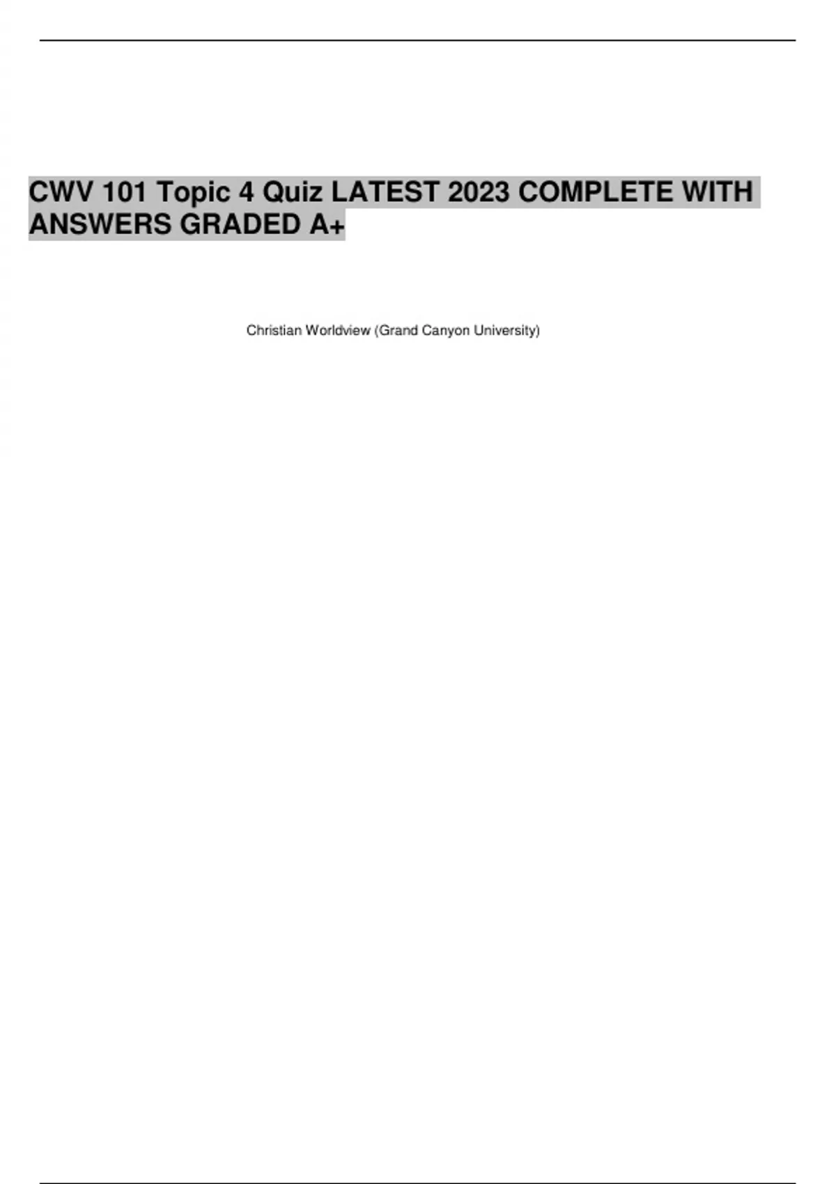 CWV 101 Christian Worldview (Grand Canyon University) 2024 LATEST TOPIC QUIZEZ GUARANTEED PASS NEW EXAMS