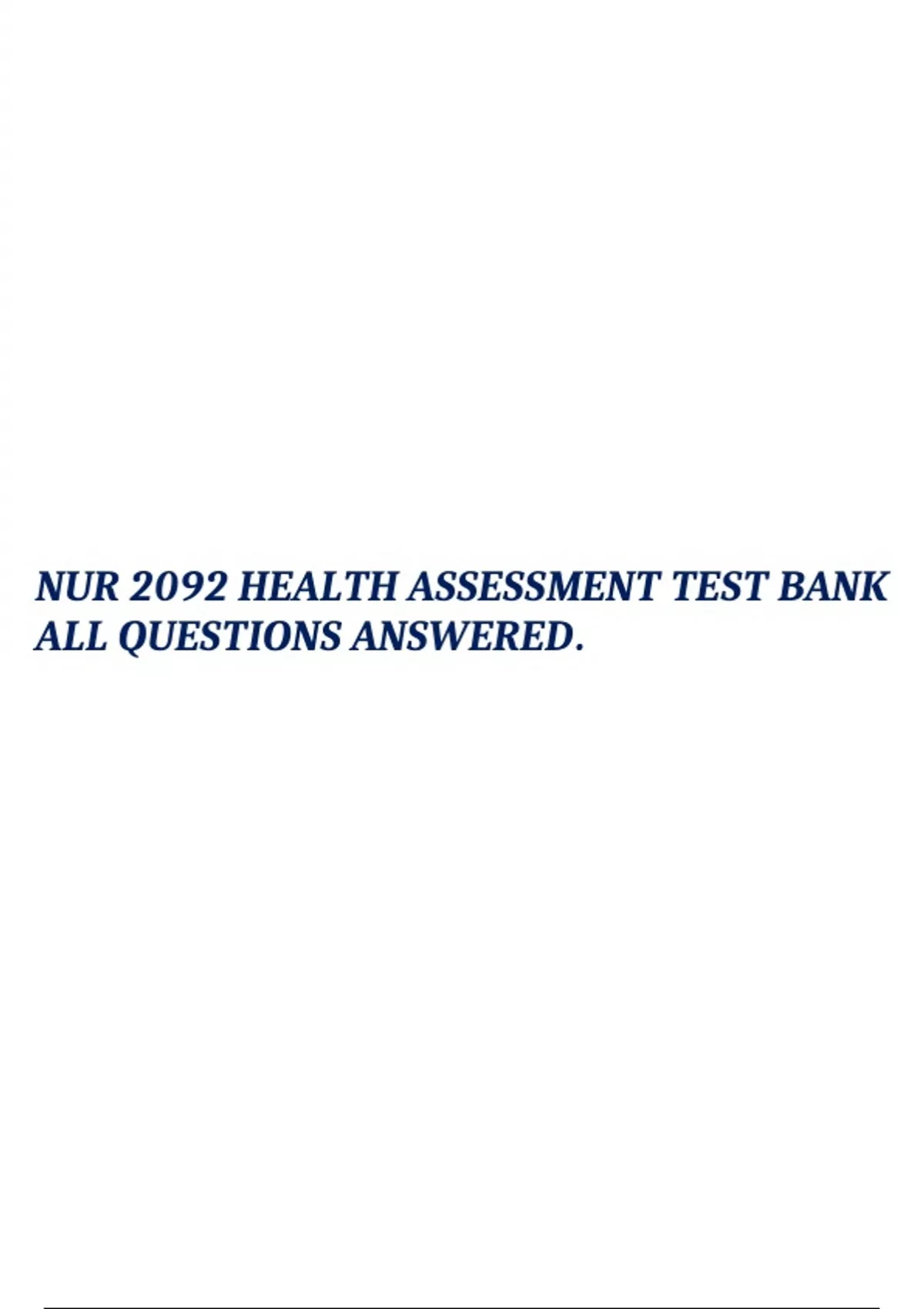 NUR 2092 HEALTH ASSESSMENT TEST BANK ALL QUESTIONS ANSWERED.