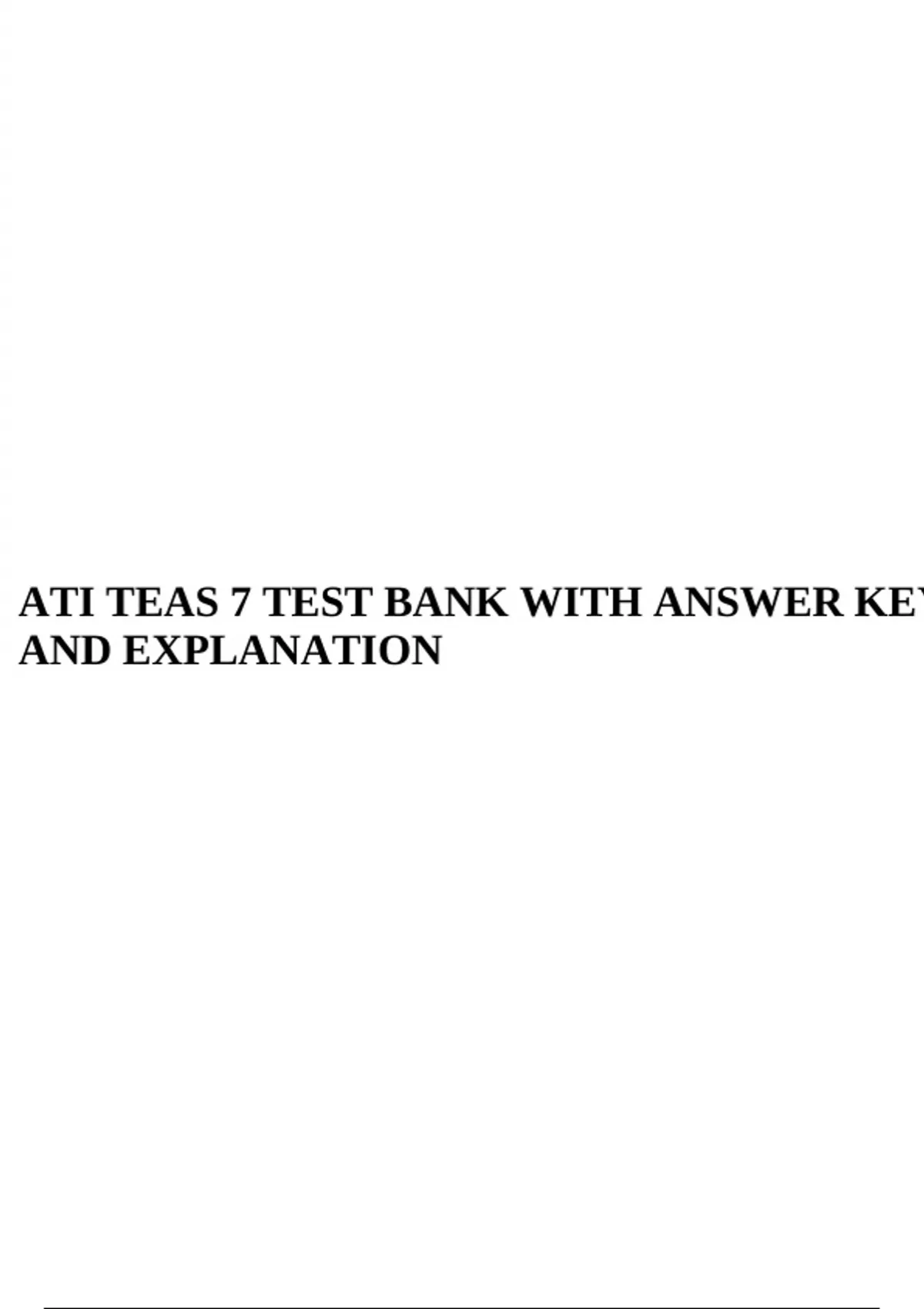 ATI TEAS 7 TEST BANK WITH ANSWER KEY AND EXPLANATION.