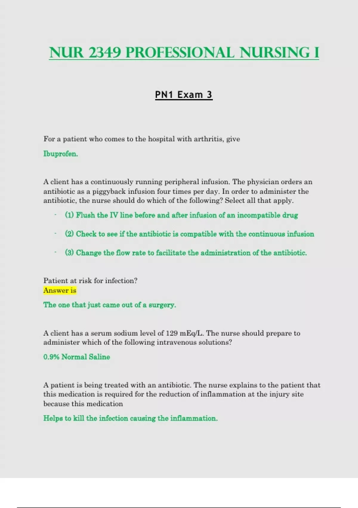Exam 3 BUNDLE - NUR2349 / NUR 2349 (Latest 2023 / 2024) : Professional Nursing I (PN1) - Rasmussen