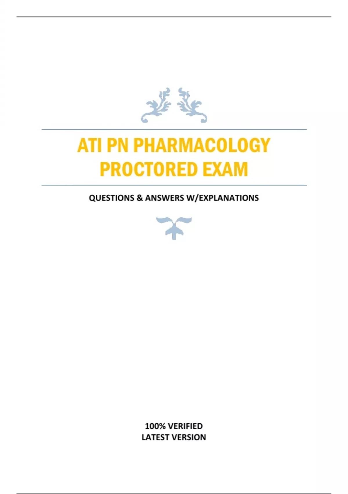 ATI PN PHARMACOLOGY PROCTORED EXAM - QUESTIONS & ANSWERS W/EXPLANATIONS (SCORED 98%) 100% VERIFIED LATEST VERSION