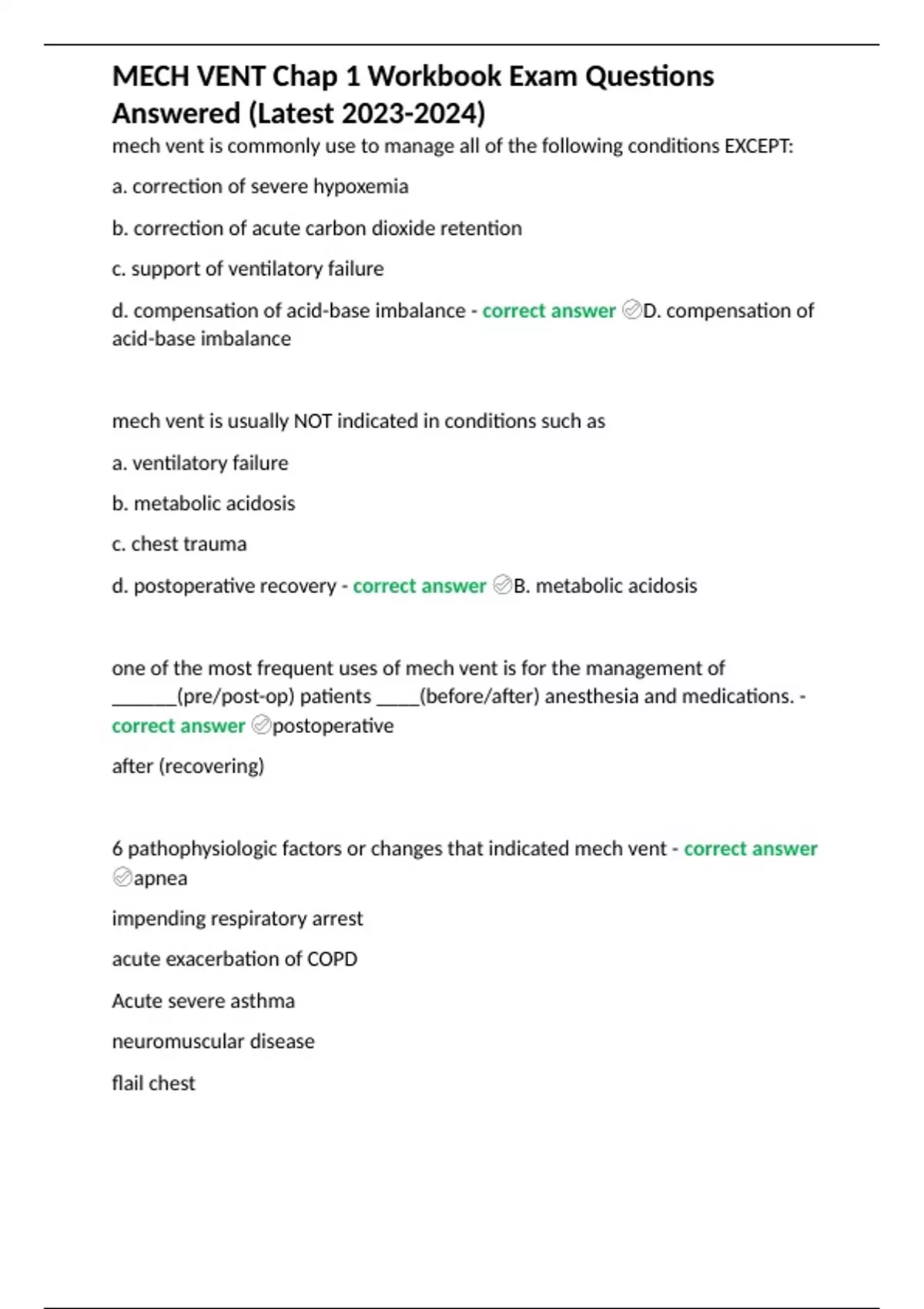 mech vent chap 1 workbook exam questions answered latest 2023 2024