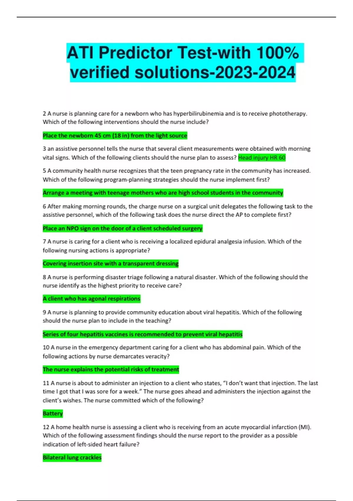 ATI Predictor Test-with 100% verified solutions-