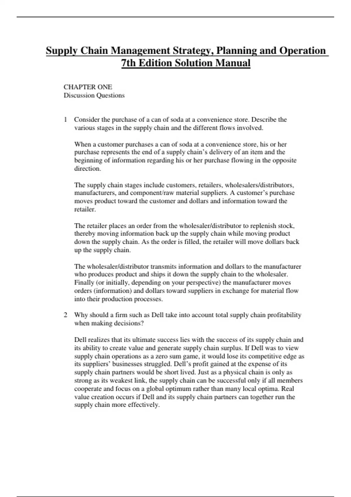 Solution Manual for Supply Chain Management Strategy, Planning and Operation 7th Edition / All Chapters 1 - 17 / Full Complete 2023