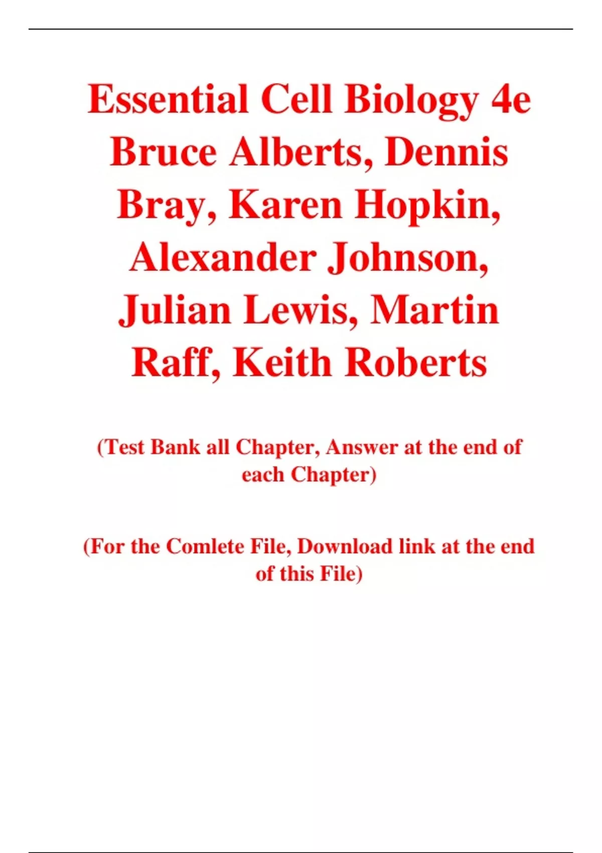 Essential Cell Biology 4e Bruce Alberts, Dennis Bray, Karen Hopkin, Alexander Johnson, Julian Lewis, Martin Raff, Keith Roberts (Test Bank) Essential Cell Biology 4e Bruce Alberts, Dennis Bray, Karen Hopkin, Alexander Johnson, Julian Lewis, Martin Raff, Keith Roberts (Test Bank)