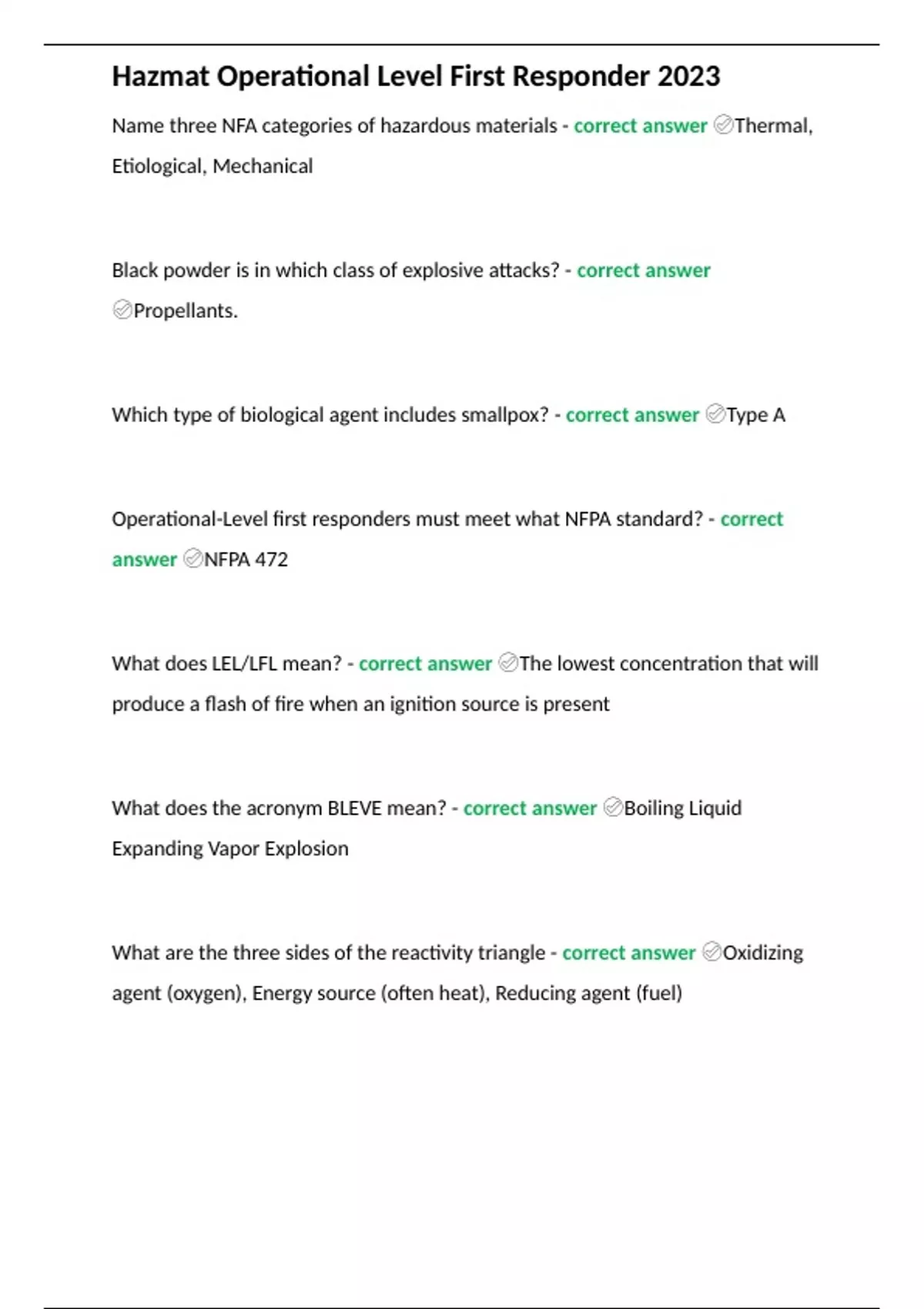 Hazmat Operational Level First Responder 2023