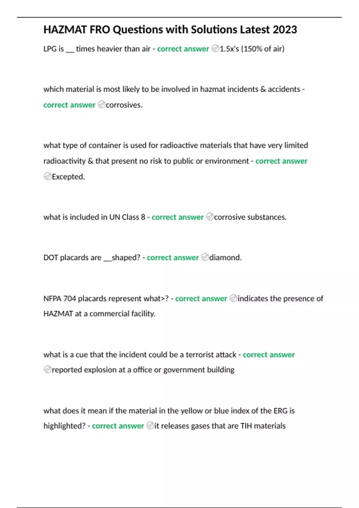 HAZMAT FRO Questions with Solutions Latest 2023