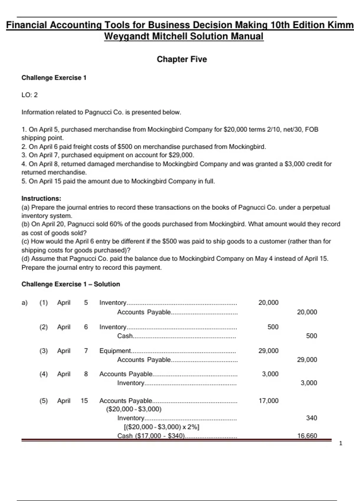 financial accounting tools for business decision making 10th edition kimmel weygandt mitchell solution manual